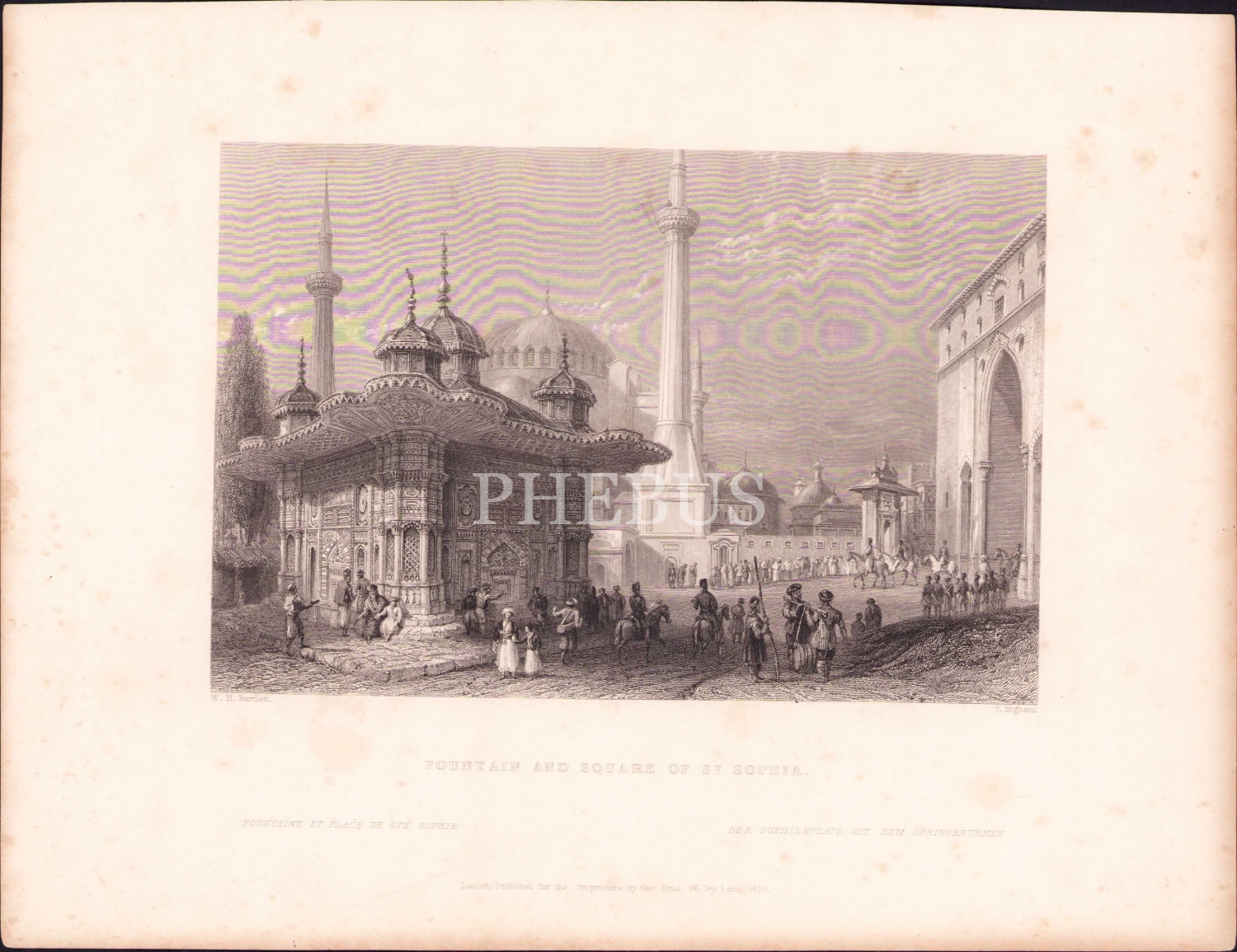 Ayasofya Camii ve meydan, gravür, W. H. Bartlett, Londra baskı, 1839, 18x12 cm