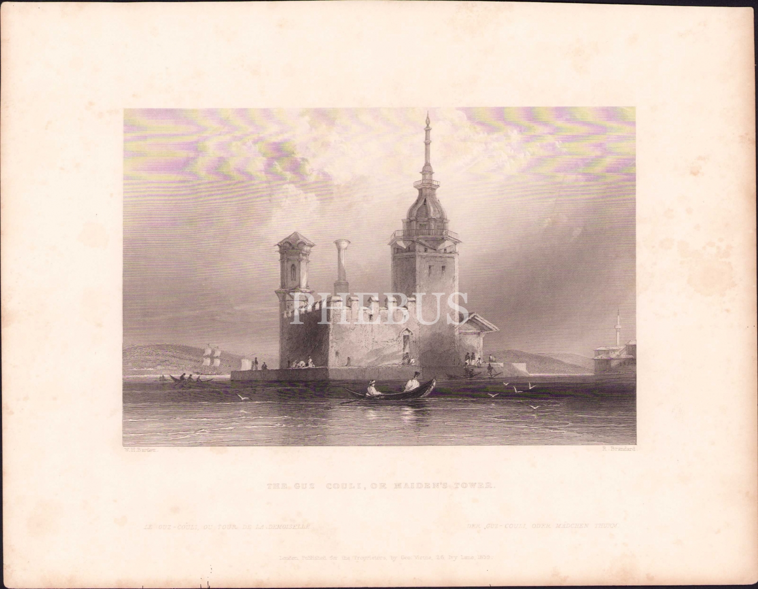Kız Kulesi, gravür, Londra bakır baskı, W. H. Barlett, 1839, 18x12 cm