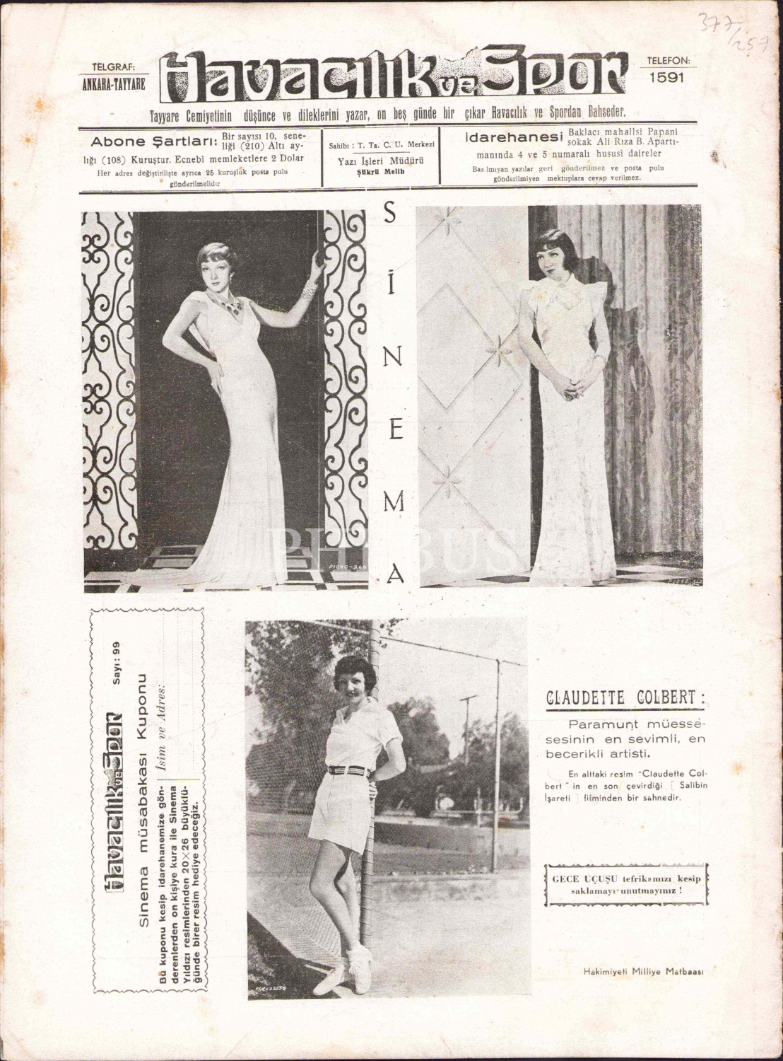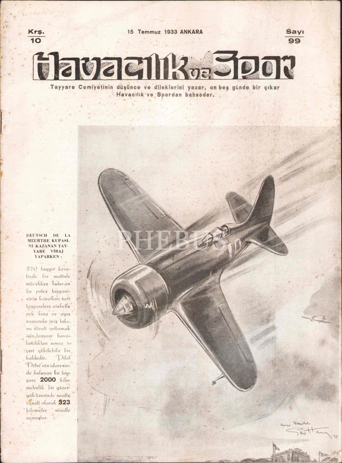 Havacılık ve Spor, Kapak: Deutsch De La Meurthe Kupasını Kazanan Tayyare Viraj Yaparken, 15 Temmuz 1933 tarihli, 24x34 cm
