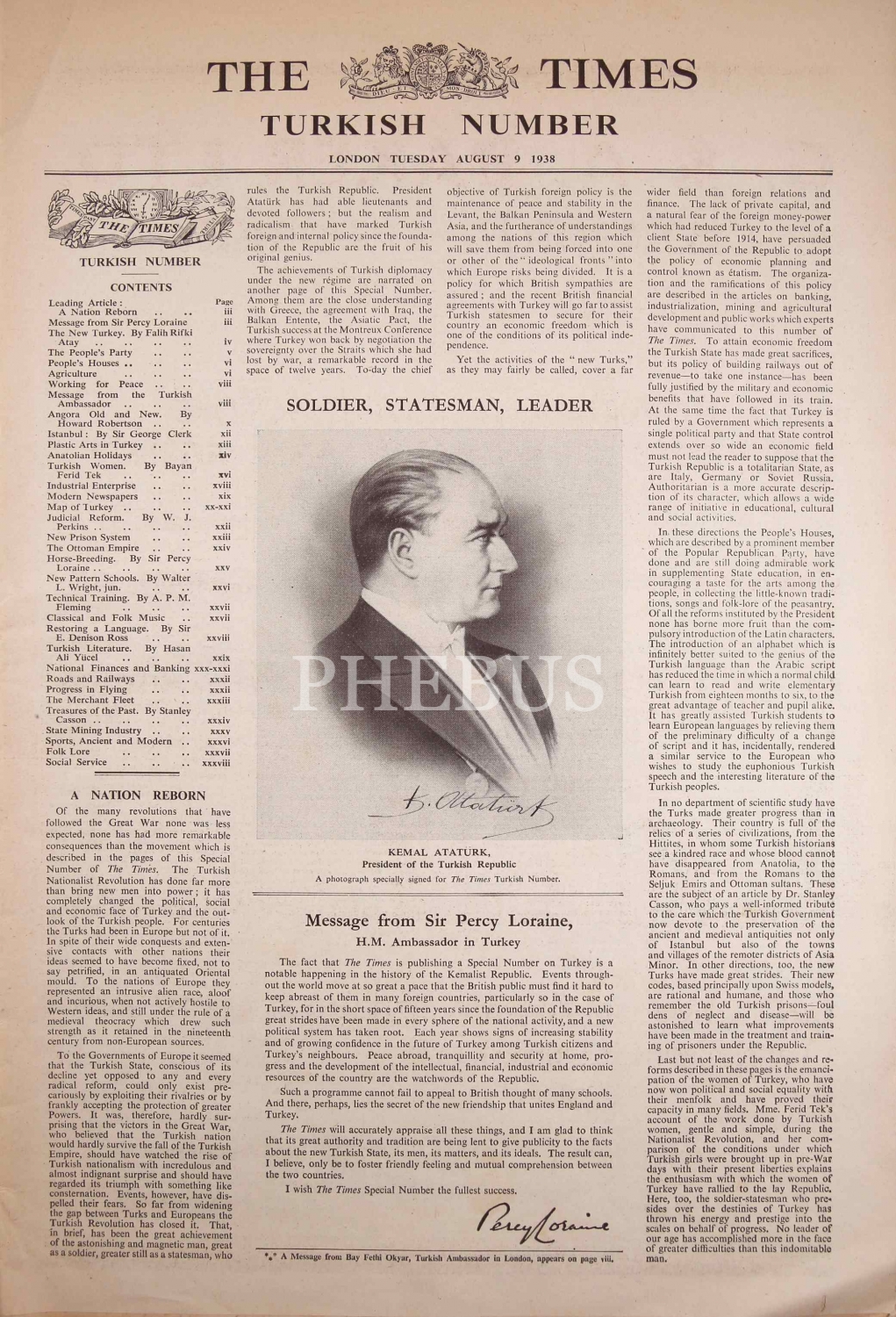 The Times Turkish Number, 9 Ağustos 1938 tarihli, 20 sayfa, 30x45 cm