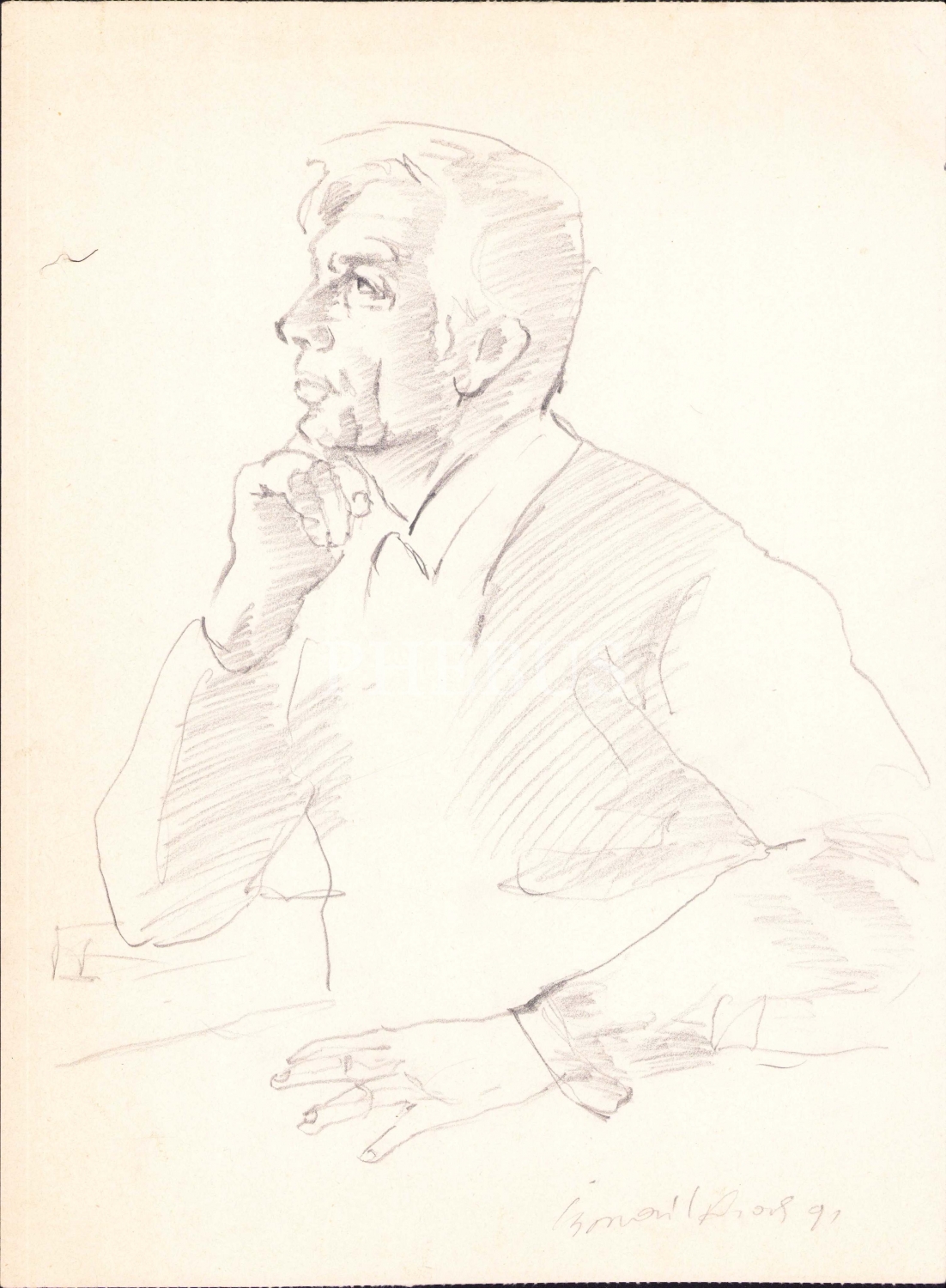 Karakalem çizim, İsmail Acar imzalı, 1991 tarihli, 30x41 cm