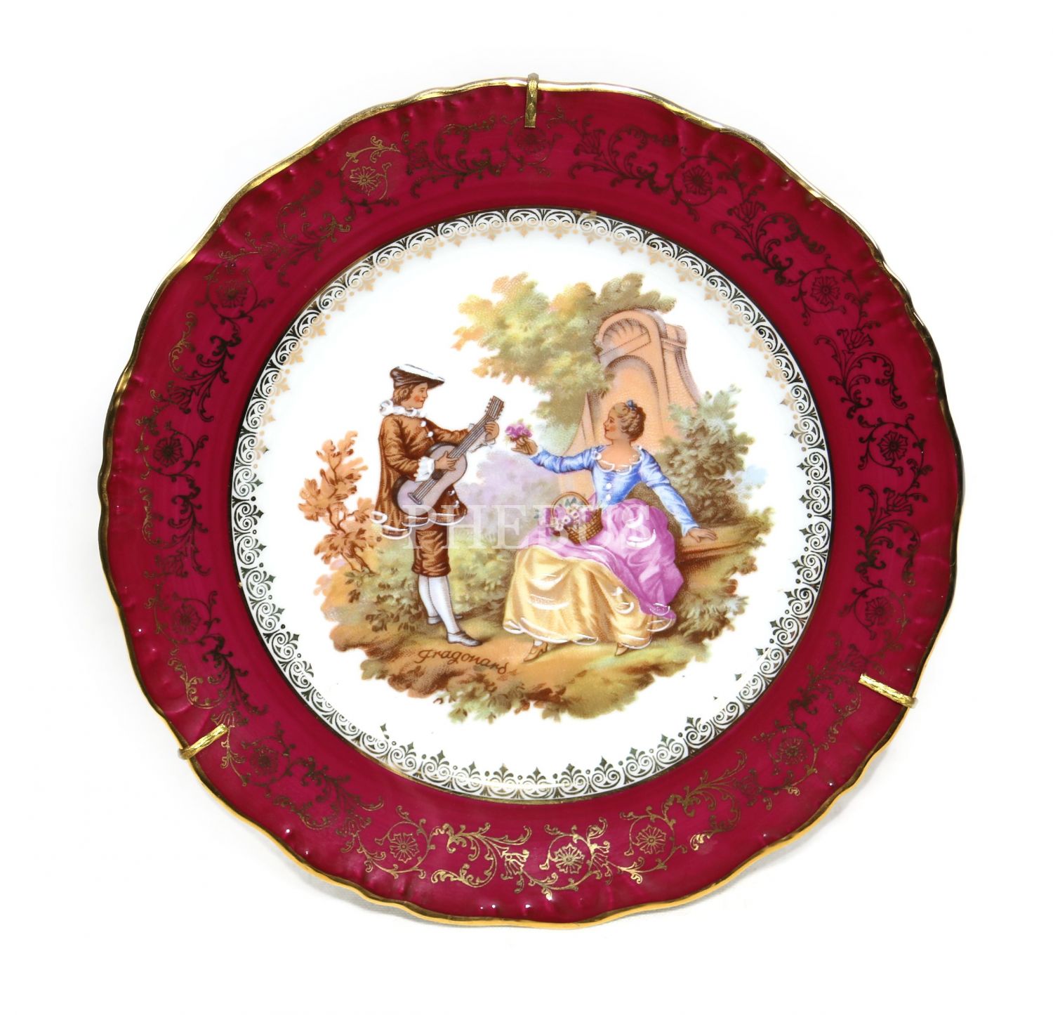 Limoges Fransa porselen tabak, Fransız Ressam Fragonard'ın rokoko tasviri, 22 cm