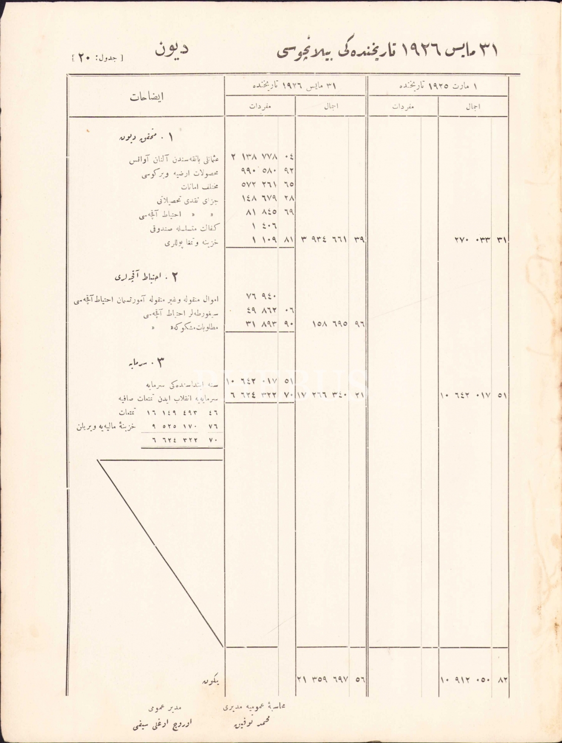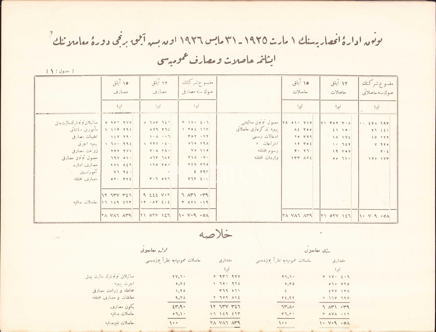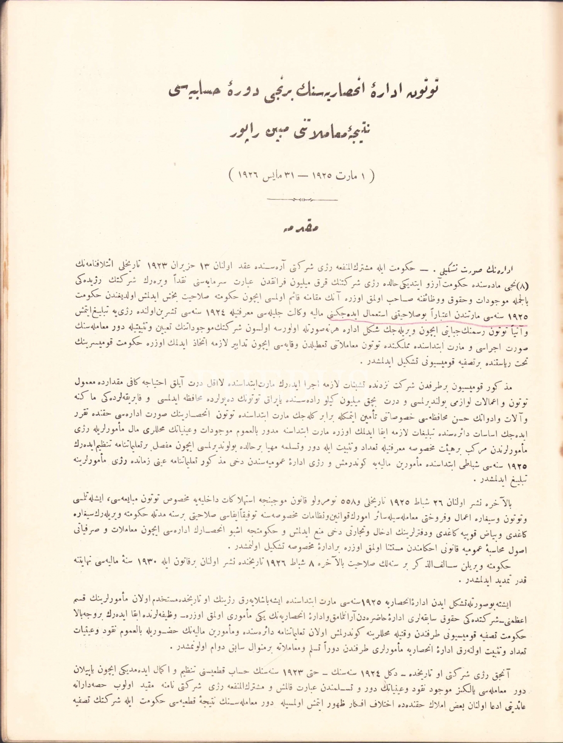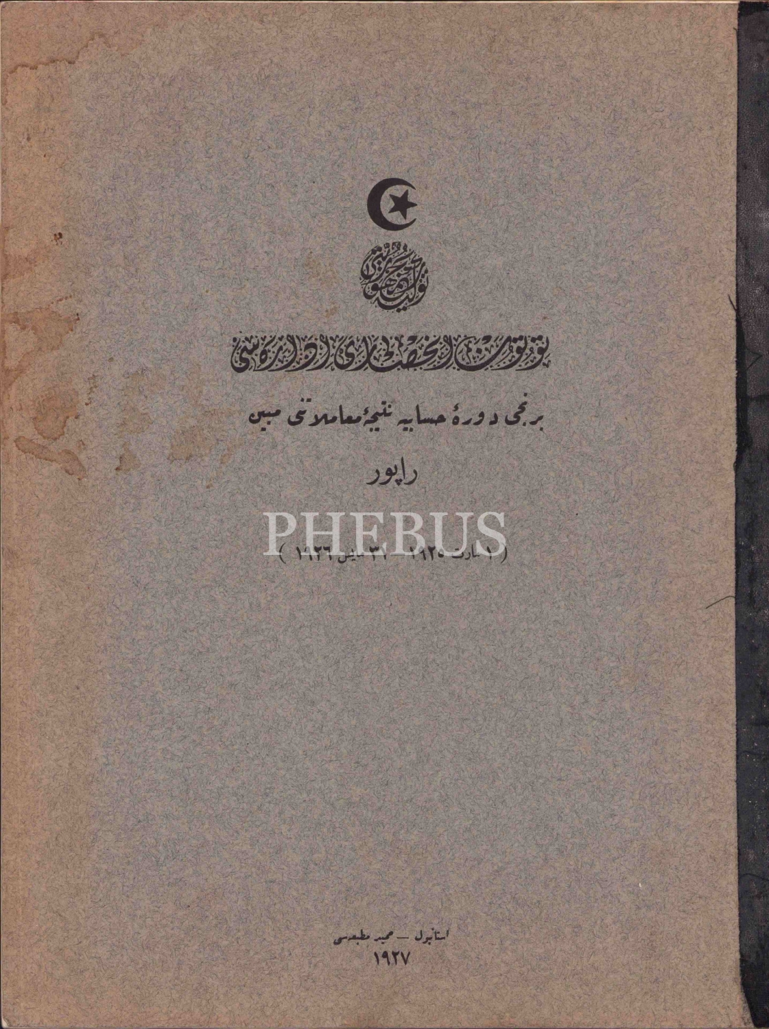Osmanlıca Tütün İnhisar İdaresi, Birinci Devre-i Hesabiye Netice-i Muamelatını Mübin Rapor, 1925-1926 tarihli, arka kapağın kenarı kıvrık, 24x32 cm