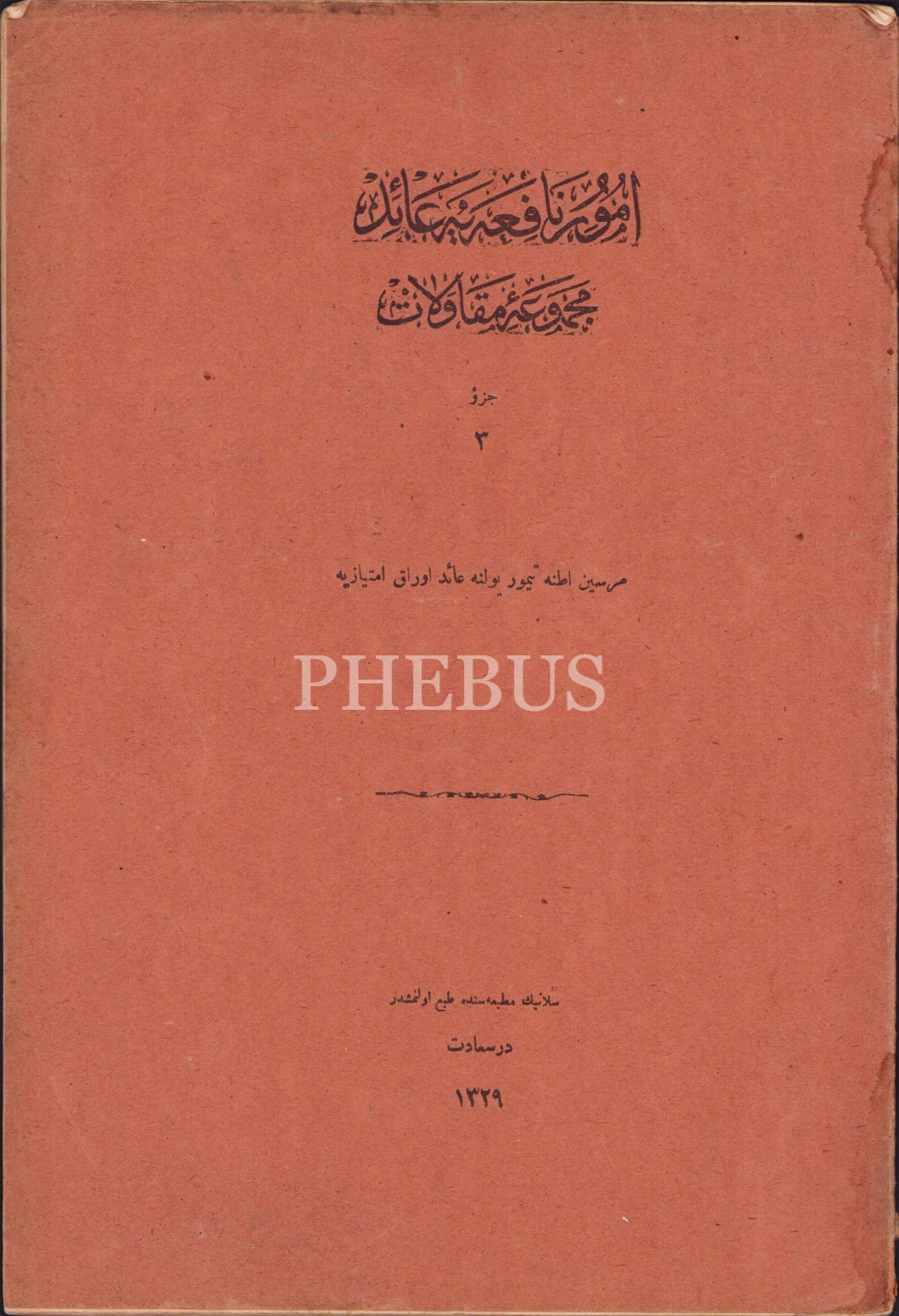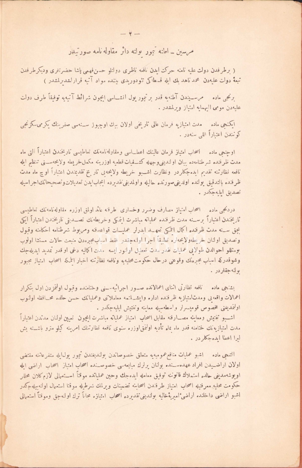 Osmanlıca Mersin Adana Demiryolu Yoluna Aid Evrak-ı İmtiyaziyye, Selanik Matbaası, Dersaadet, 1329, 21x32 cm