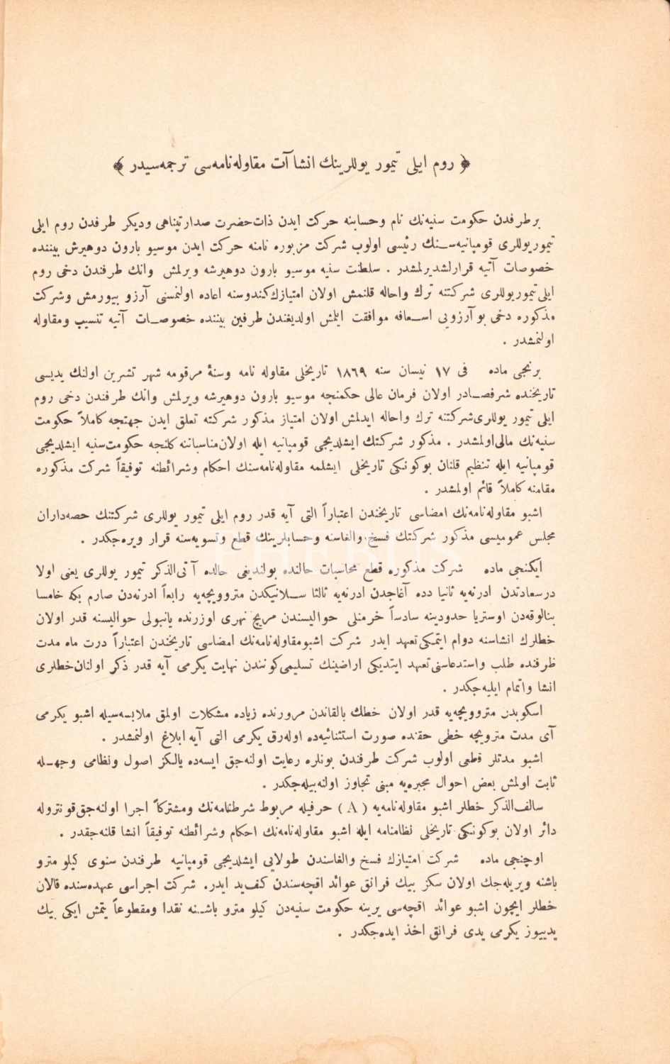 Şark Demiryollarına aid Mukavelat, Cüz:2, Dersaadet, Selanik Matbaası, 1329, 21x32 cm