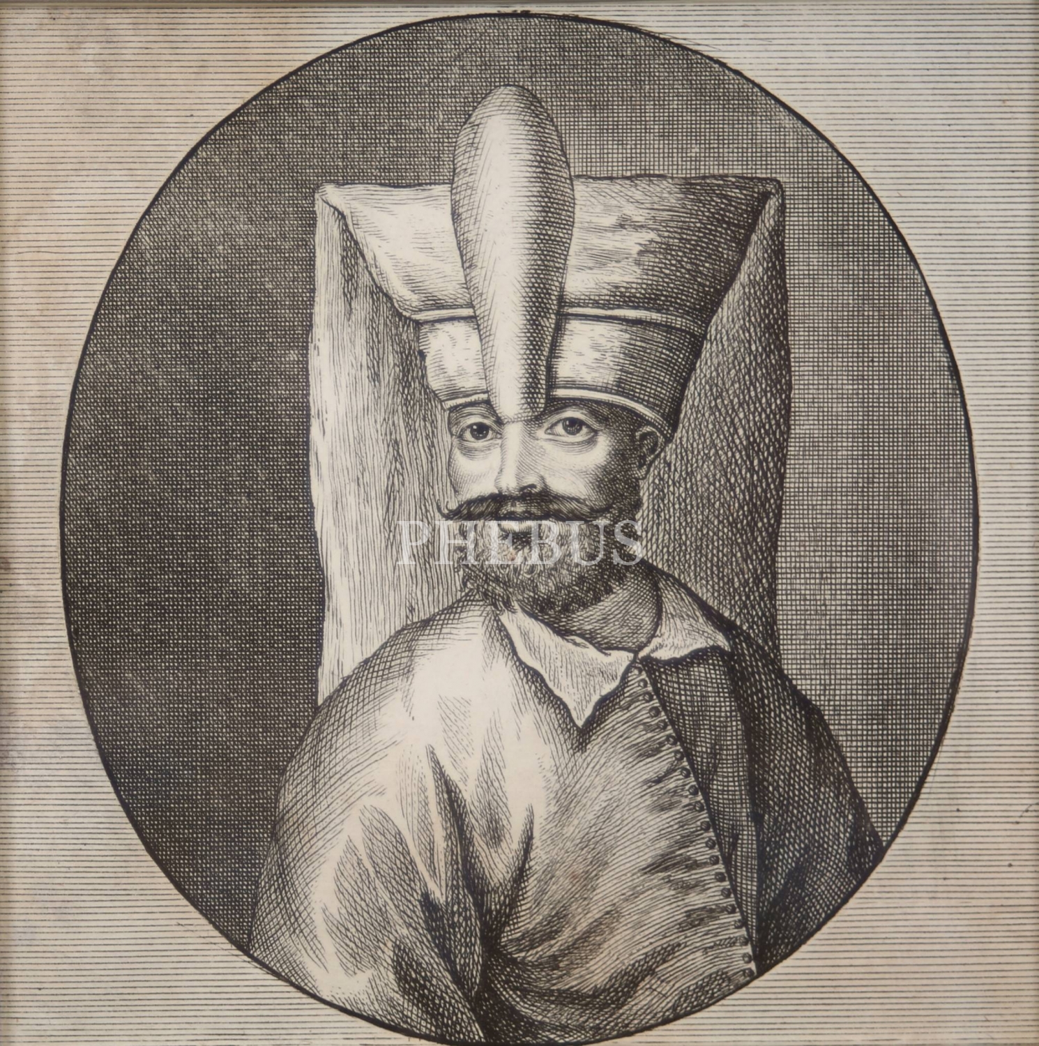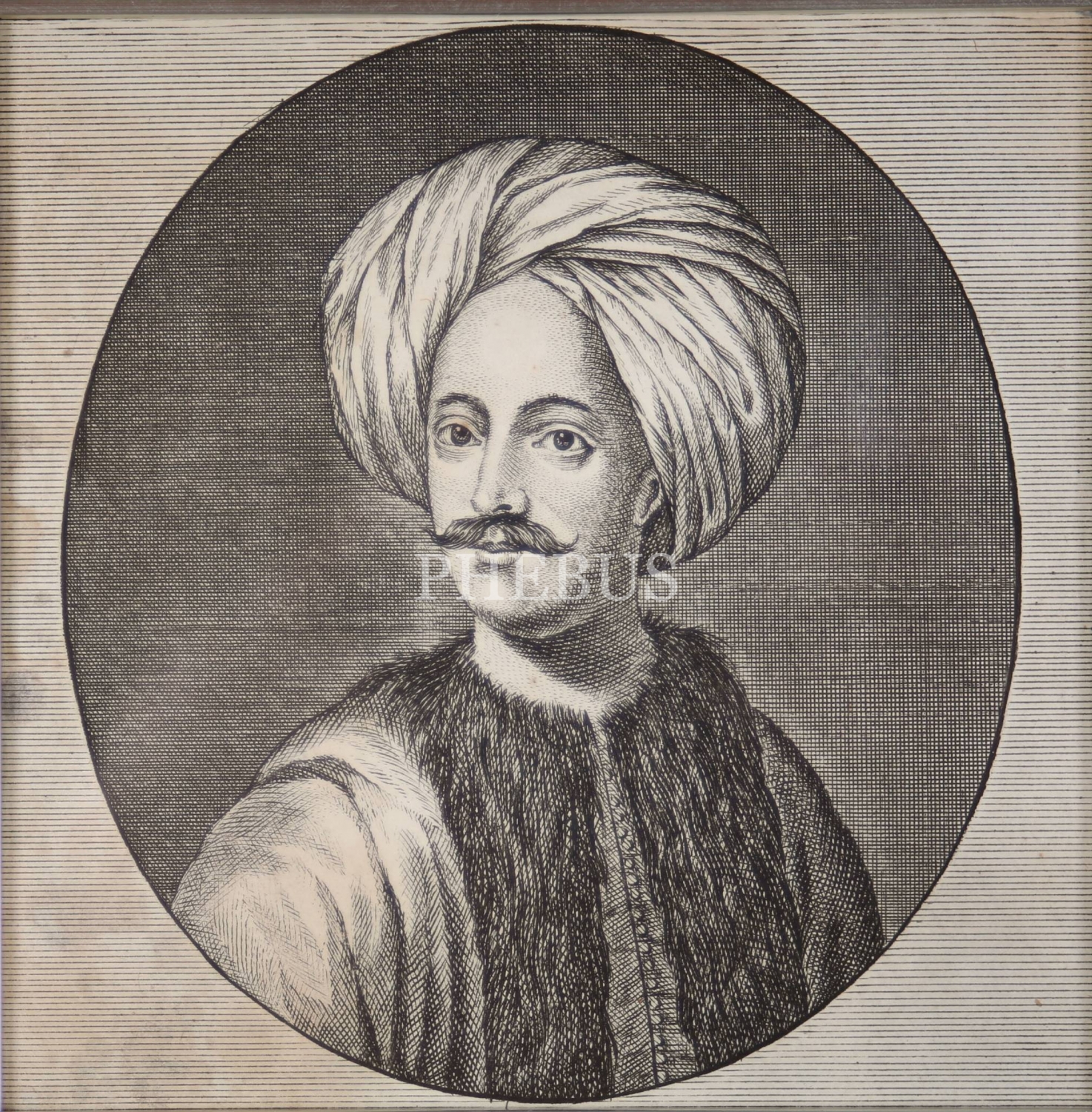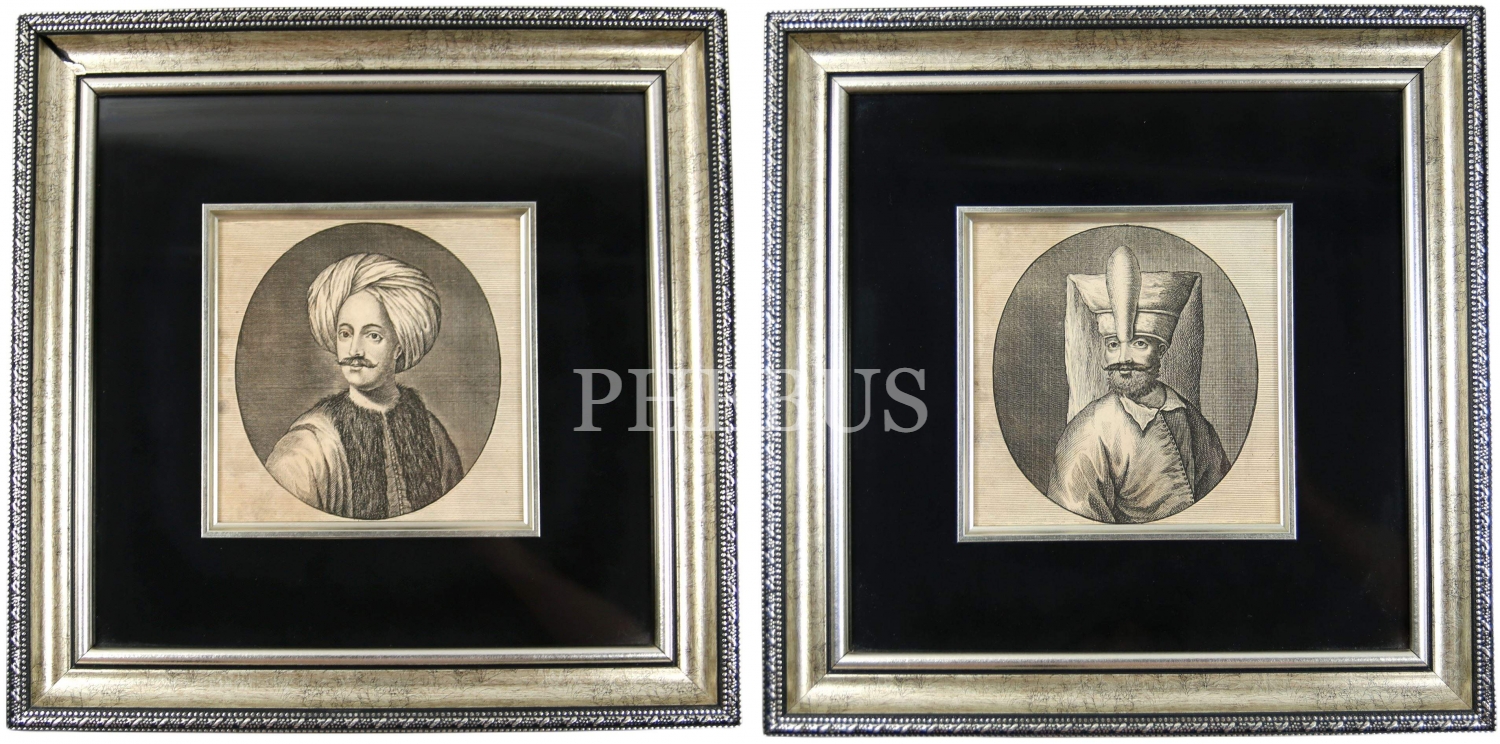İki adet 1714 yılına ait orijinal Osmanlı kıyafet betimlemeleri gravürü, Cornelis de Bruyn, Paris, Guillaume Cavelier, çerçeveli, her biri 15x15 cm