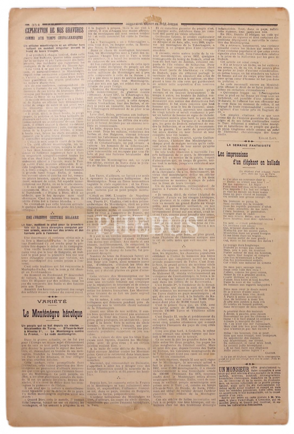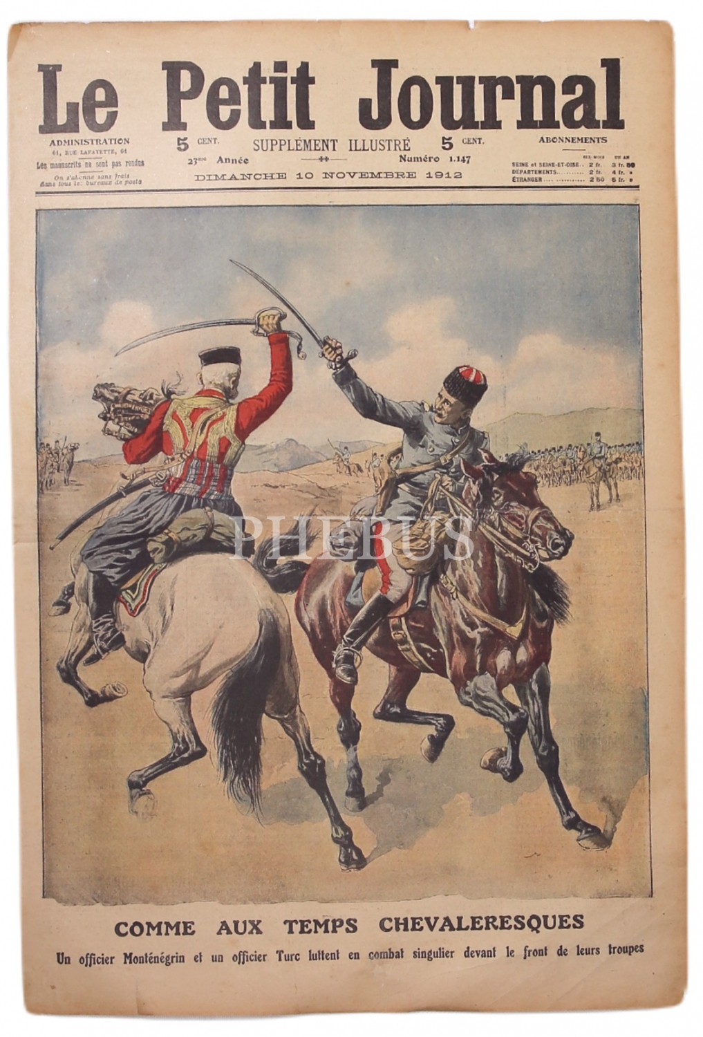 Fransızca Le Petit Journal dergisi kapağı, Balkan Harbi, 10 Kasım 1912 tarihli, 30x45 cm