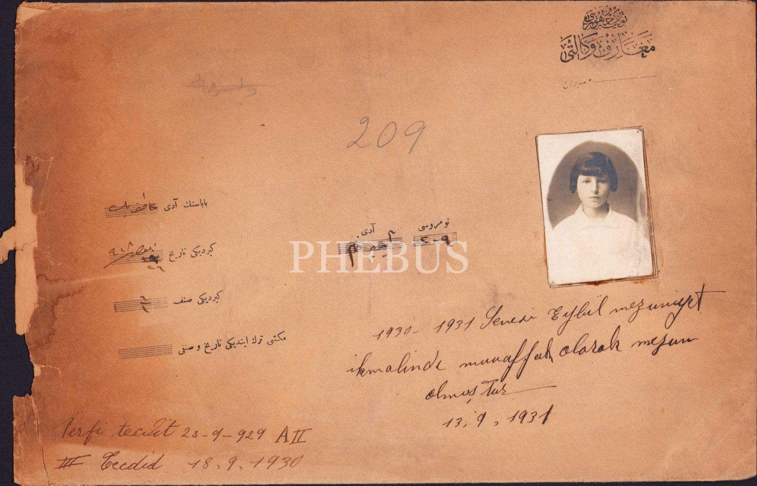 Osmanlıca Maarif Vekaleti antetli öğrenci dosyası, 1929-1930 tarihli, içleri boş, 30x19 cm