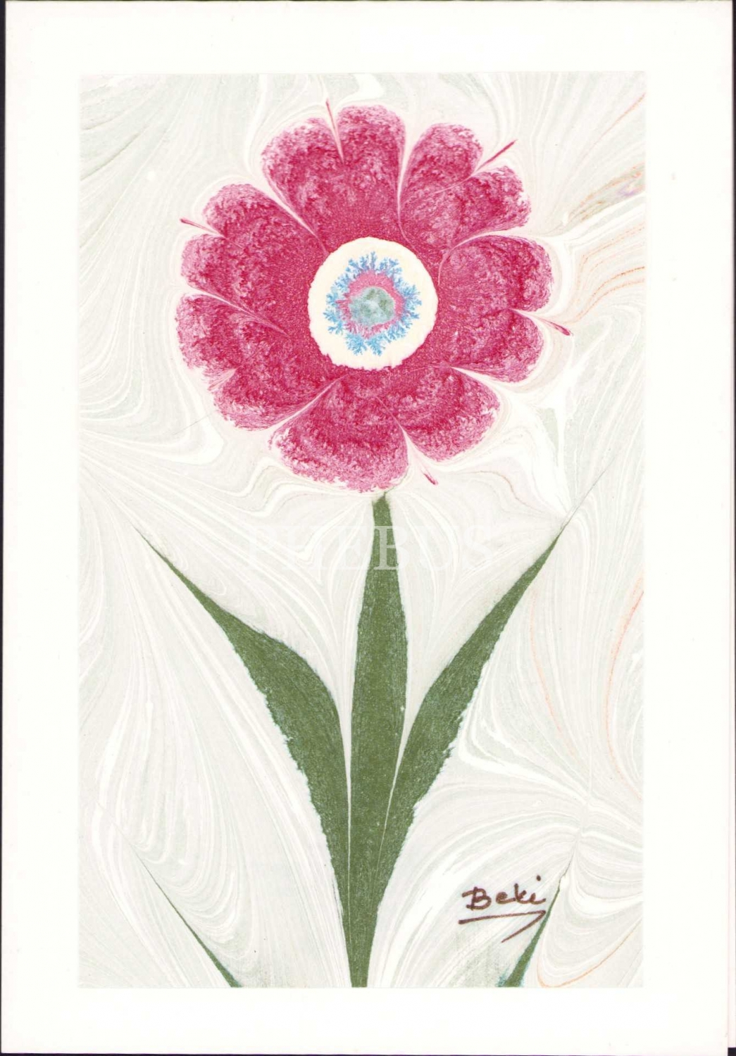Ebru, Yahudi ebru sanatkarı Beki Almaleh Hodara imzalı, 9x14 cm