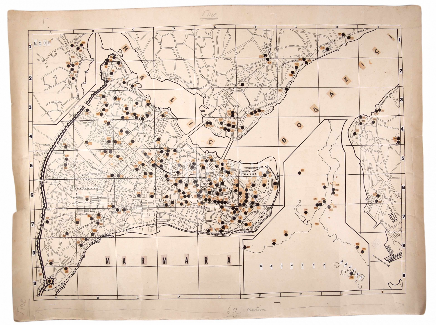 El çizimi İstanbul turistik mekanlar haritası, 70x50 cm