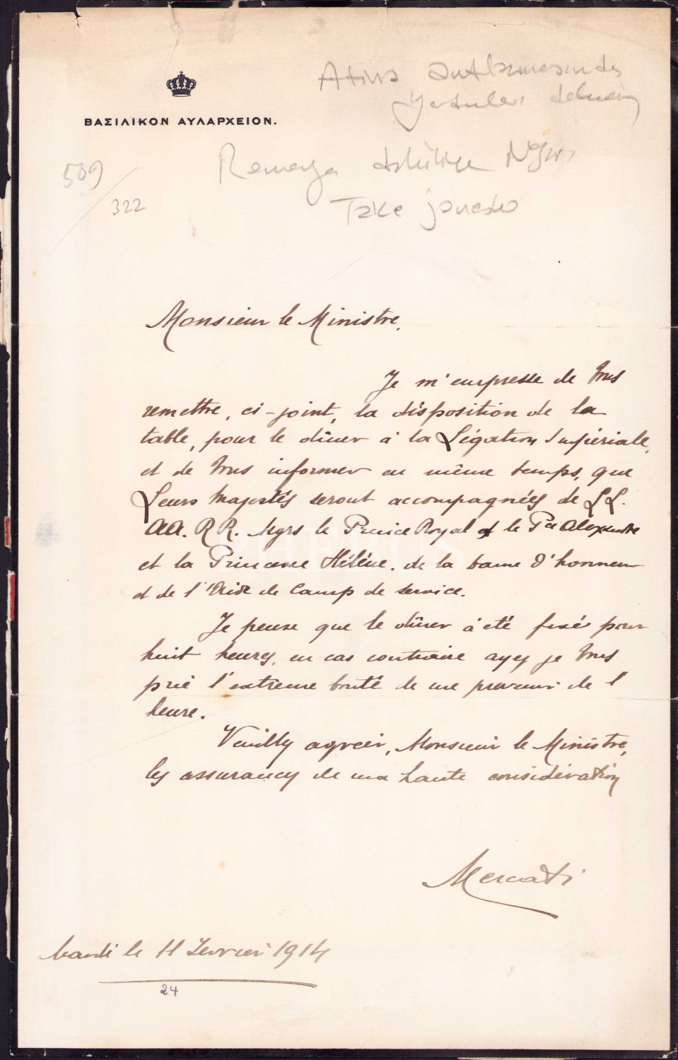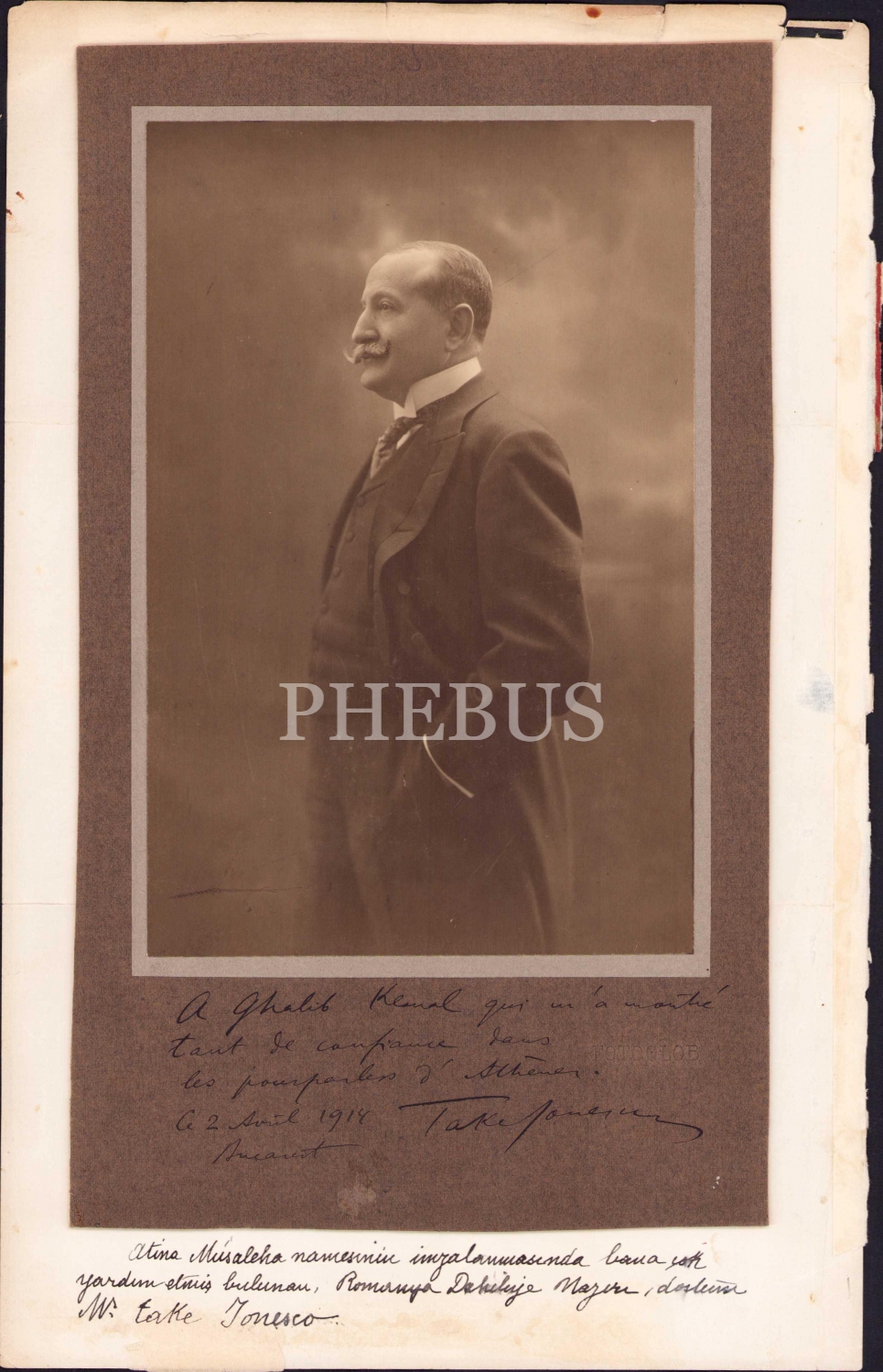 Osmanlı Yunan Antlaşması'nda Galip Kemali Söylemezoğlu'na yardımları dokunann Romanya Dahiliye Nazırı Ionesco, Ali Galip Söylemezoğlu'nun el yazısı mevcut, 17x28 cm