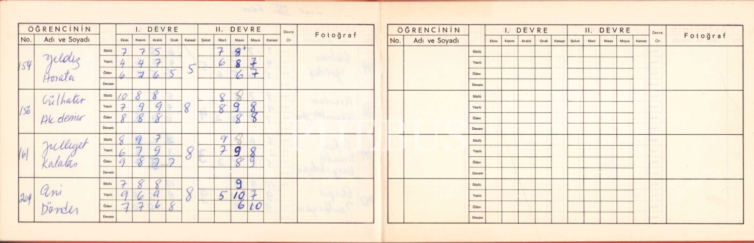 Ermeni Eseyan Lisesi Öğretmeni Not Defteri, Beş Adet, [1972/73-Orta 1-2-3], 1973/74 [Orta-3], 1977/78 [Lise-3], 1983/84 [Orta-1], 1988/89 [Orta1-2-3], 10x14 cm