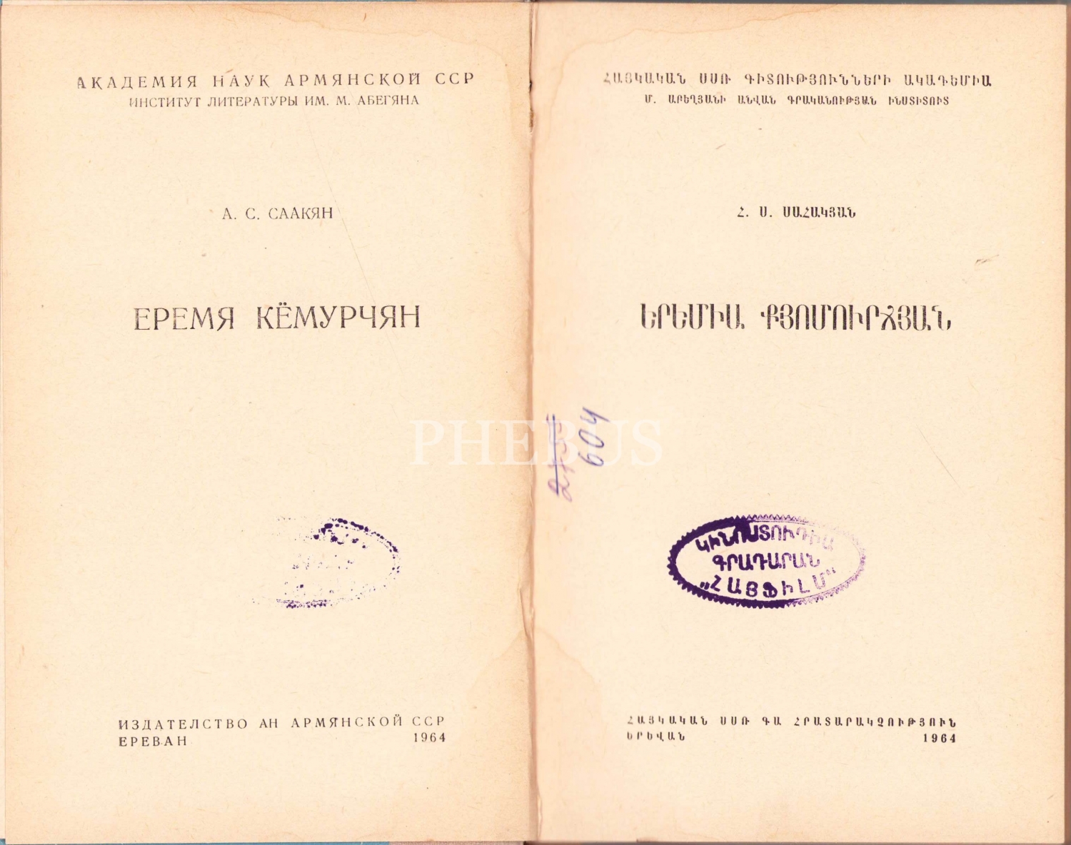 Ermenice Yeremia Çelebi Kömürcüyan [1637-1695] Hayatı ve Çalışmaları, 1964, Erivan Baskı, 174 sayfa, 14x21 cm
