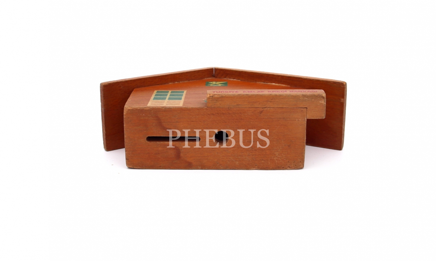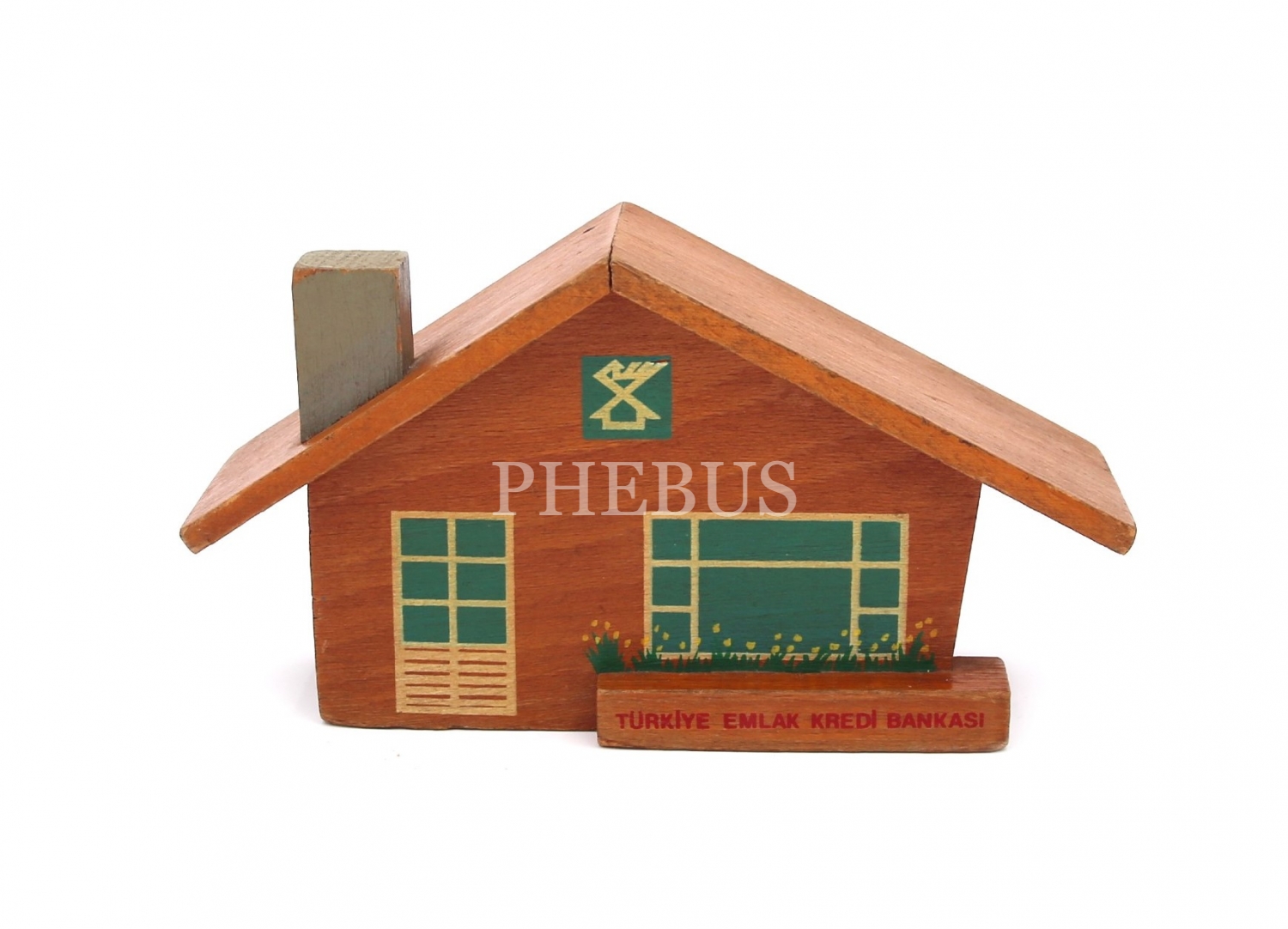 Türkiye Emlak Kredi Bankası, ev formunda ahşap kumbara, 18x10x5 cm