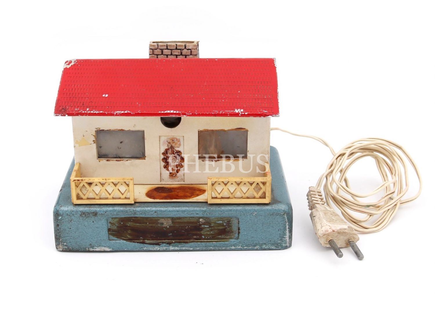 Türkiye Öğretmenler Bankası, ev formunda, metal kumbara, haliyle 16x11x12 cm