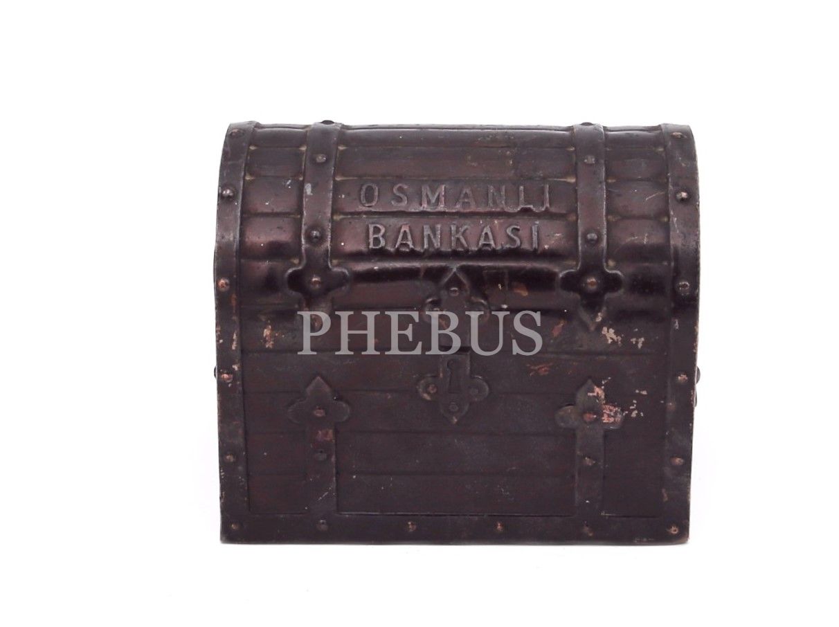 Osmanlı bankası, sandık formunda metal kumbara, 8x11x8 cm
