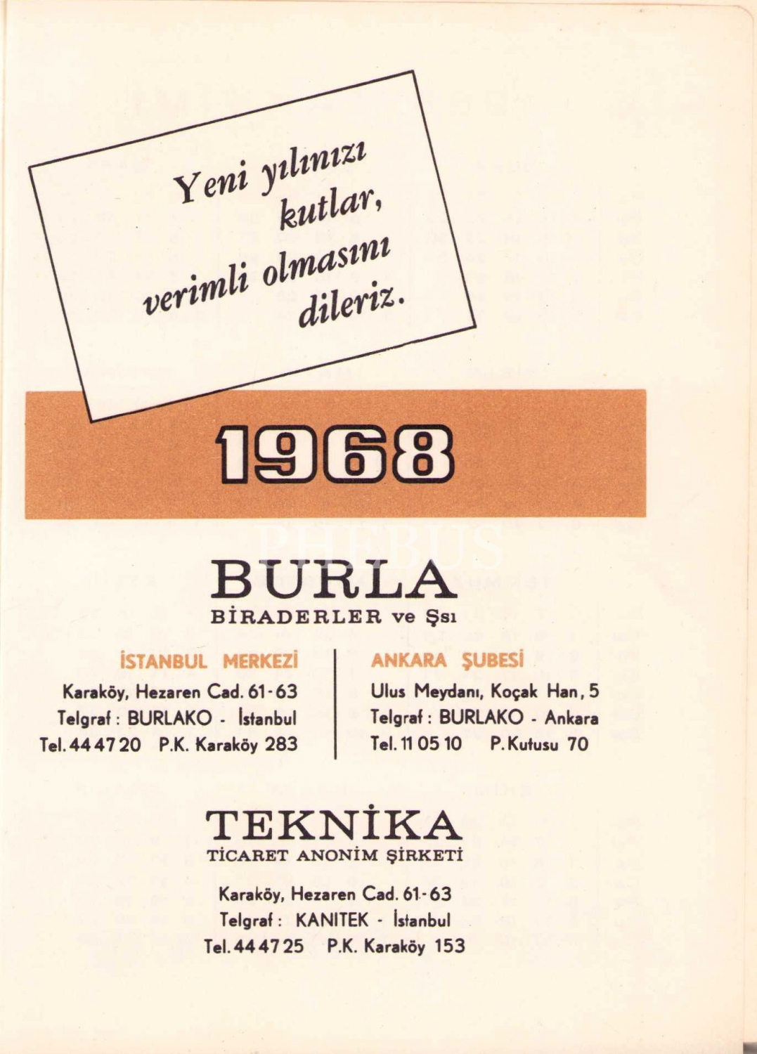 Burla Biraderler, 1968 yılı ajandası, içerisinde bolca reklam mevcut, 16x12 cm