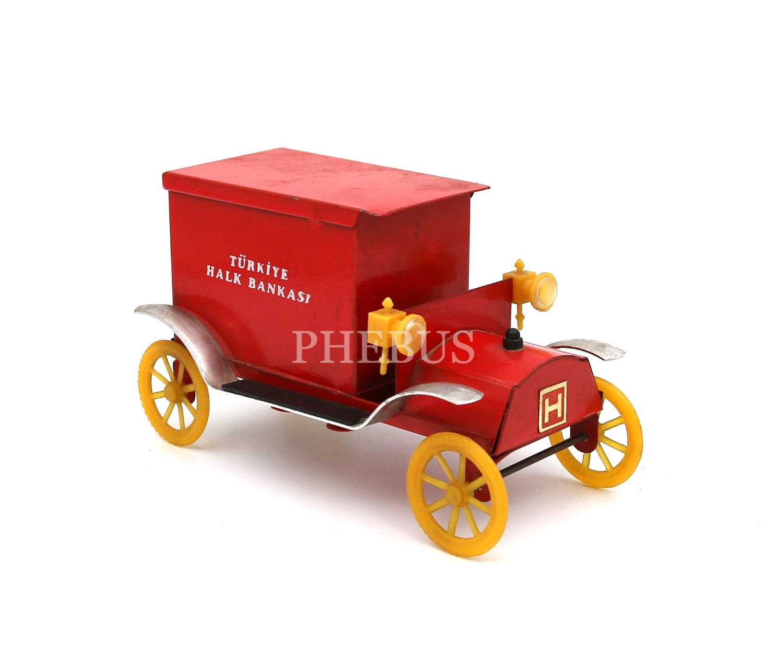 Türkiye Halk Bankası, otomobil formunda, metal kumbara, 9x18x11 cm
