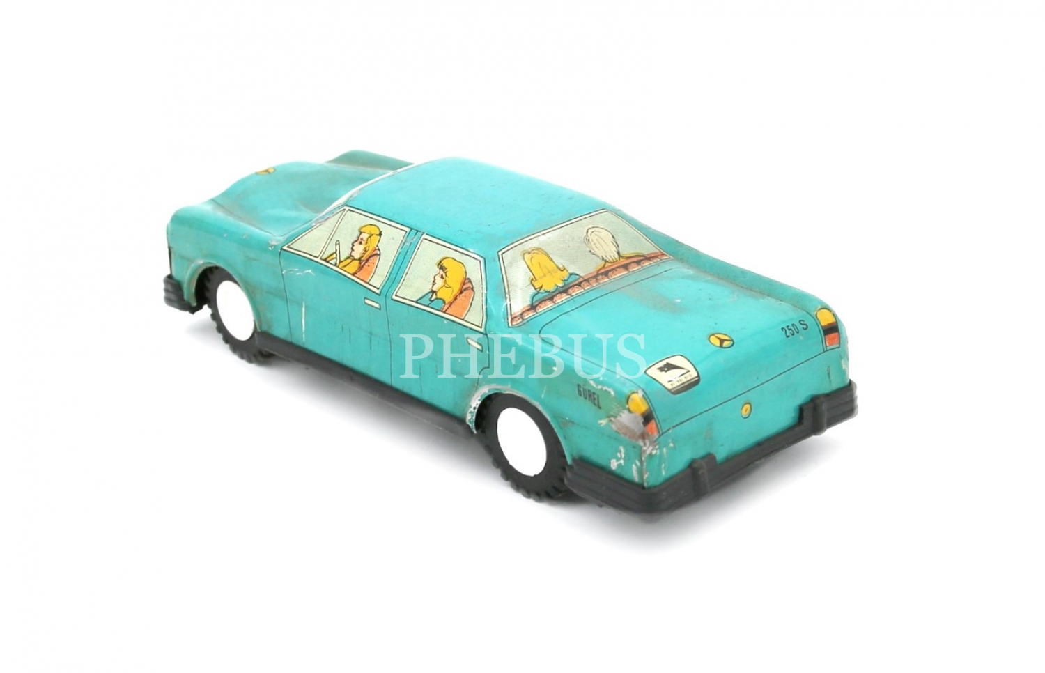 Türk malı, Gürel marka, Mercedes 250 S model, kutusunda, teneke oyuncak araba, 18x7x5 cm