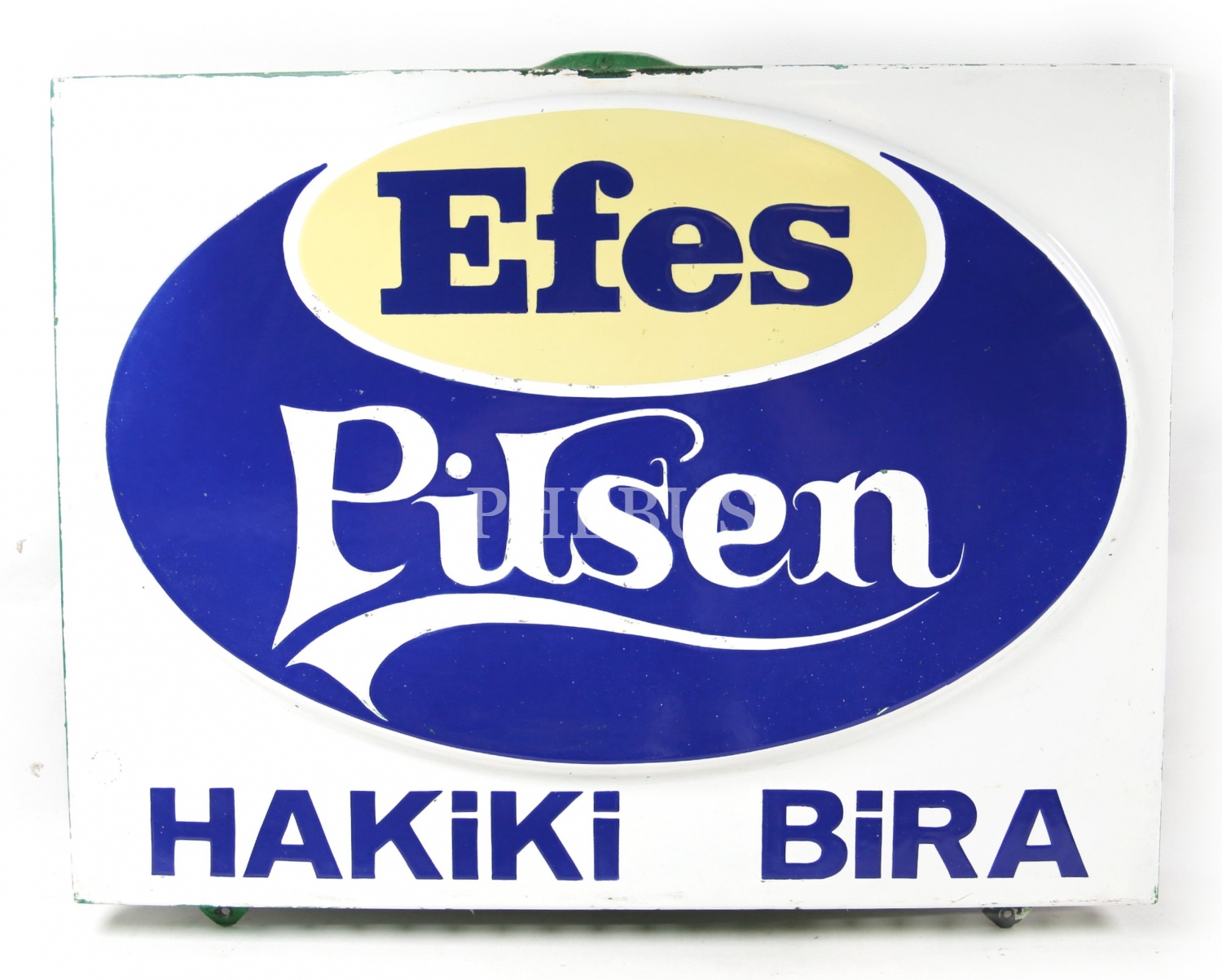 Efes Pilsen Hakiki Bira, büyük boy emaye reklam tabelası, 51x39x2 cm