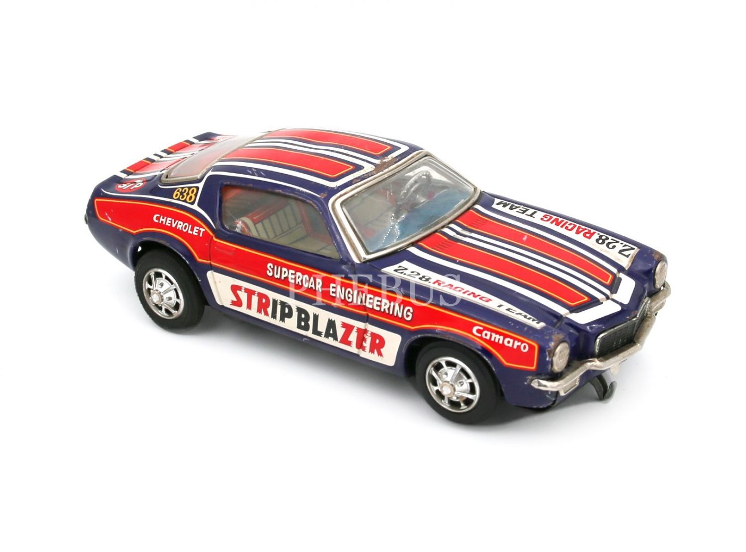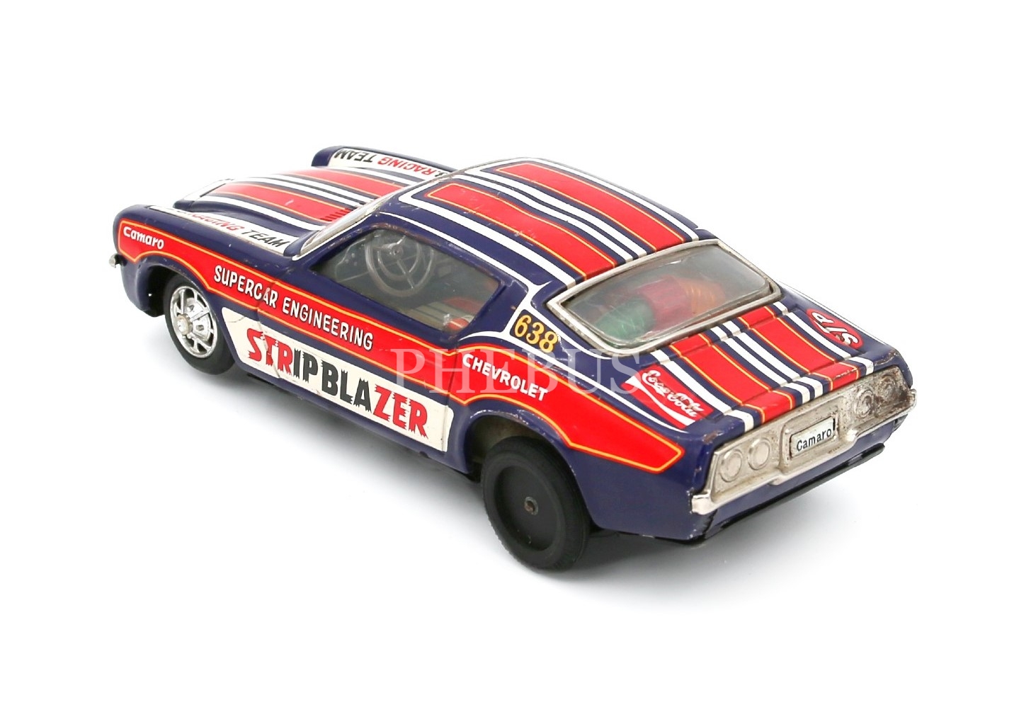 Japon malı, Taiyo marka, pilli, ışıkları çalışır durumda, Coca Cola reklamlı, Chevrolet Camaro teneke yarış arabası, 25x10x7 cm