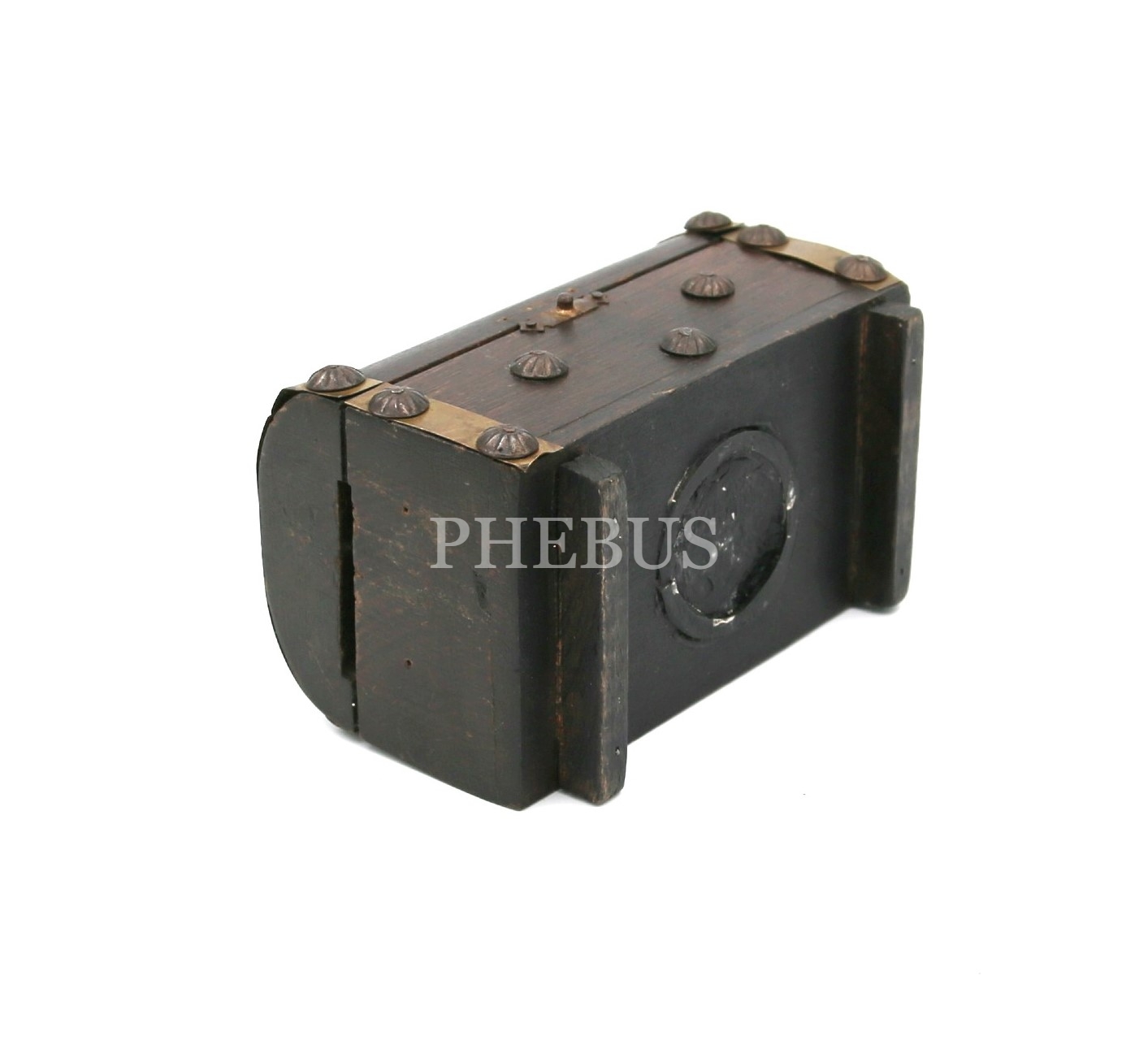 İş Bankası sandık formunda ahşap kuımbara, 8x13x7 cm