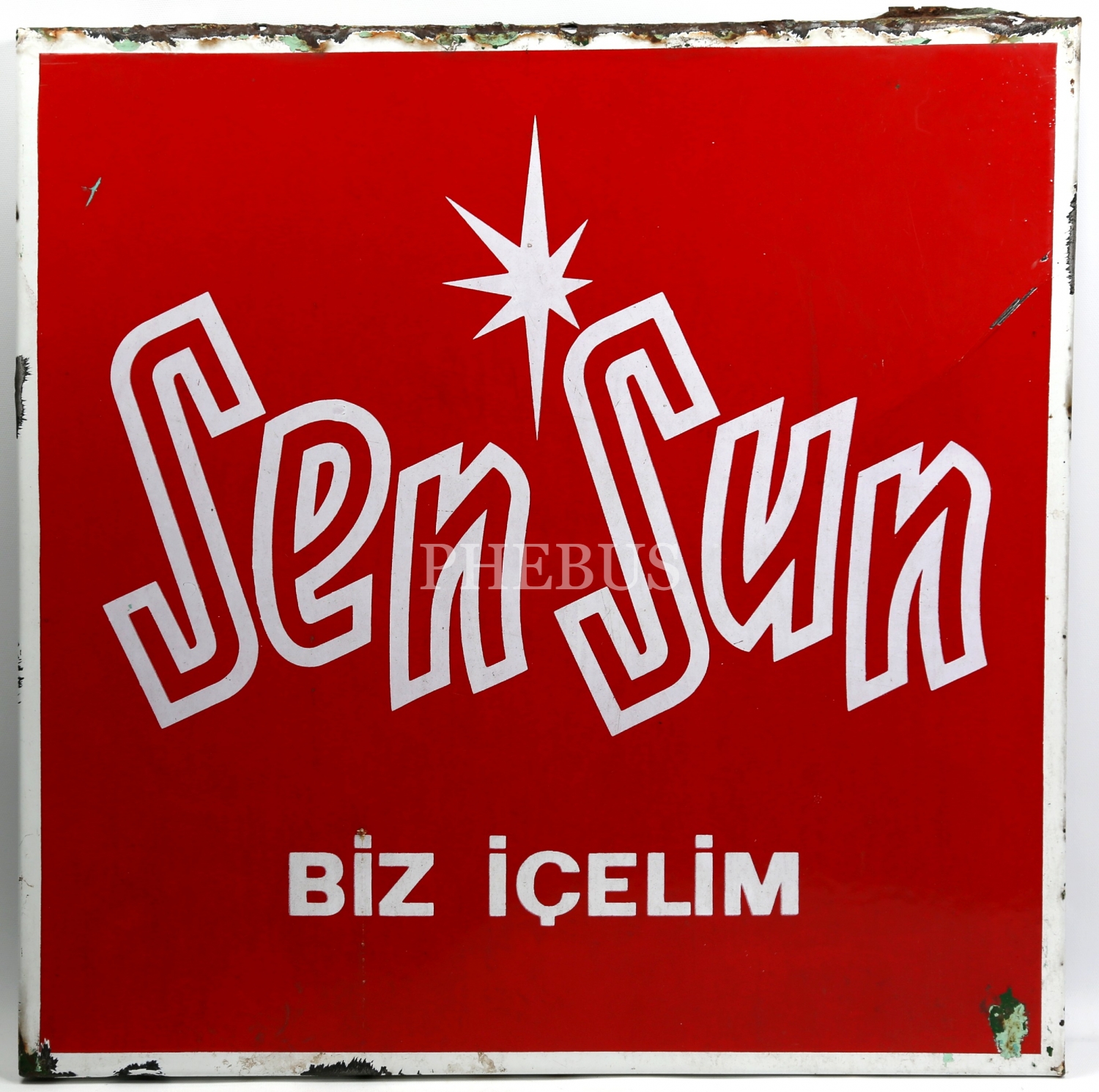 Sen Sun, büyük boy emaye reklam tabelası, 46x47x2 cm