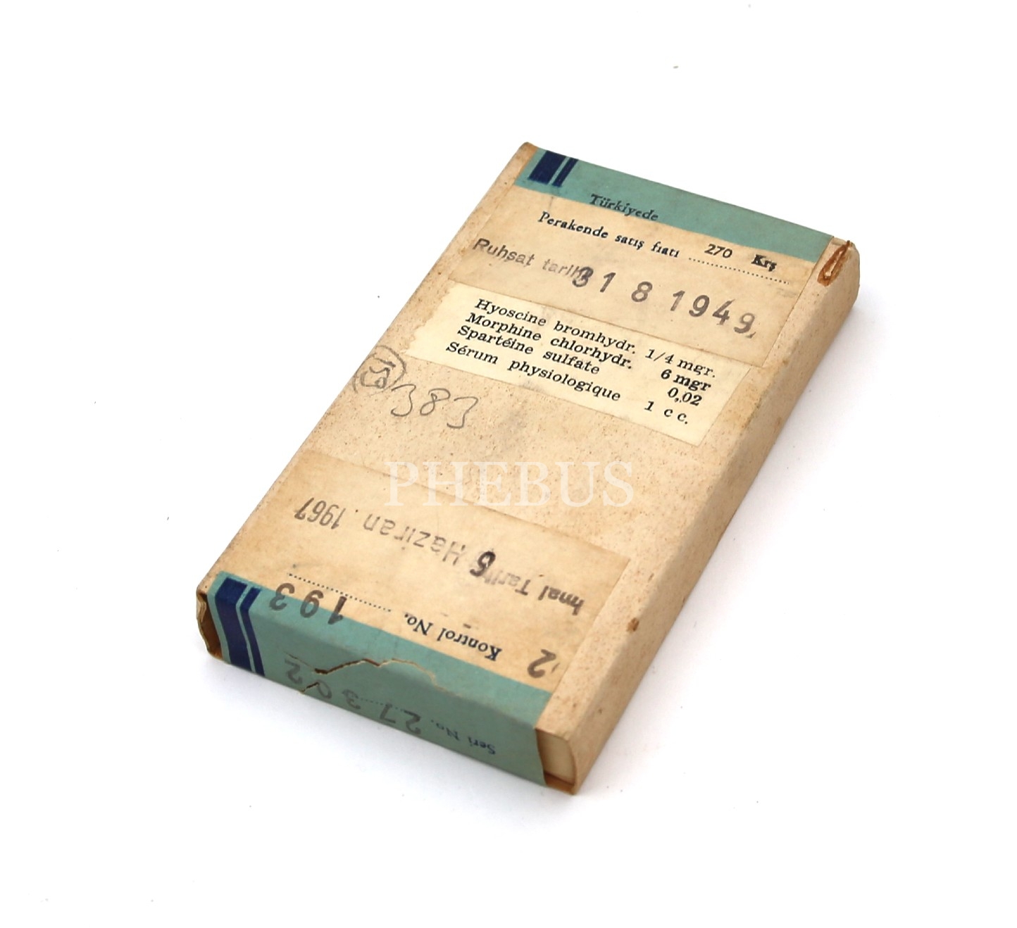 Şark İspençiyari Laboratuarı, 1967 tarihli, Sedalfa açılmamış kutusunda 10 ampul iğne,10x6x2 cm