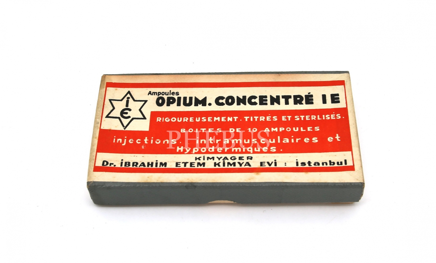 Dr. İbrahim Etem Kimya Evi, Fransızca ve Türkçe yazılmış, Opium. Concentre Ie, iğne kutusu, 13x7x2 cm
