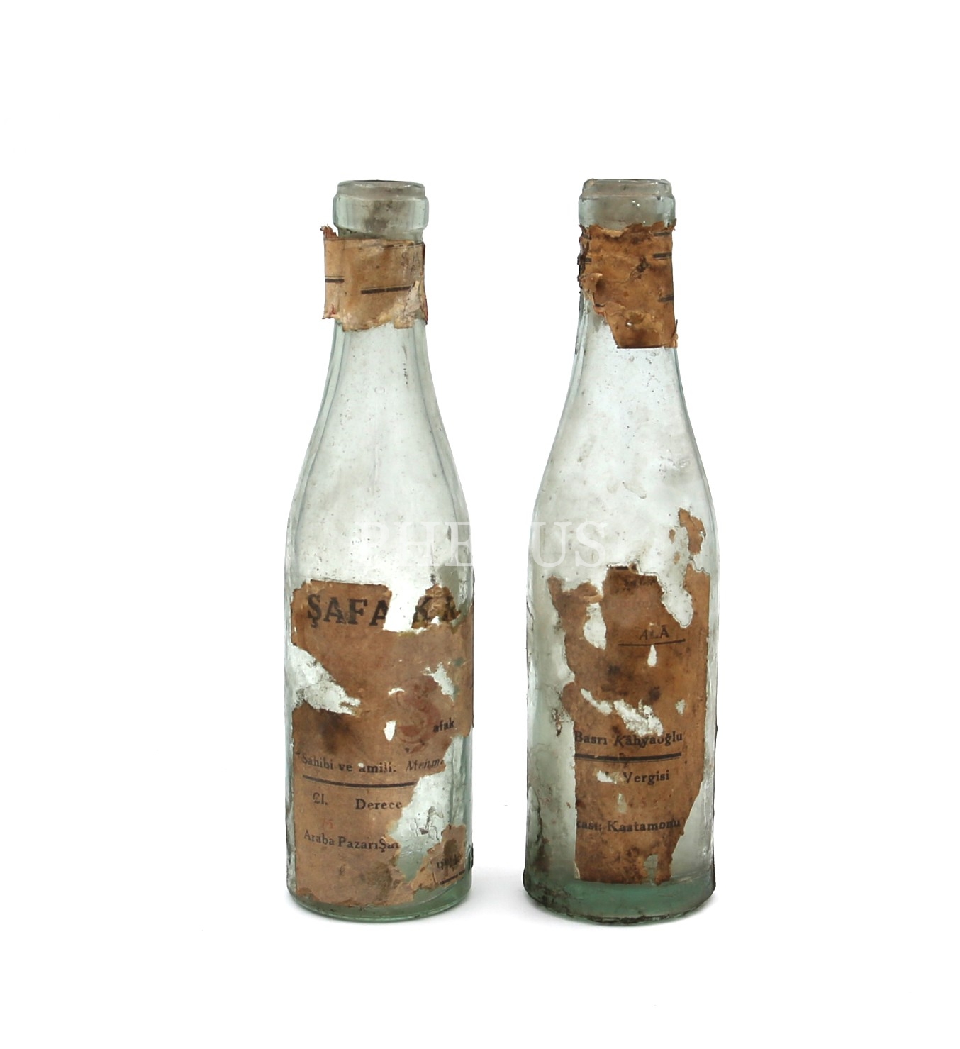 Kastamonu, Şafak rakısı, 2 adet cam şişe, şişe etiketleri haliyle, 19x5 cm