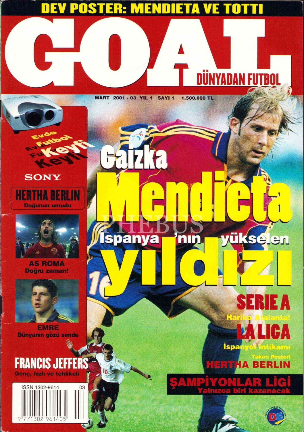 Goal futbol dergisi, Mart 2001 ilk sayı, 66 sayfa, 21x30 cm