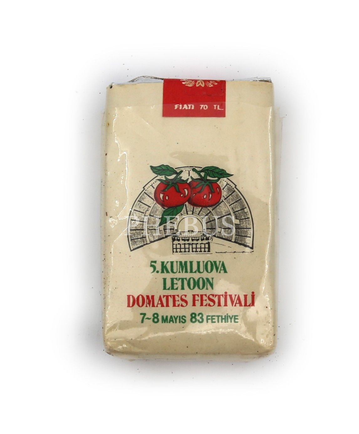 5. Kumluova Letoon Domates Festivali, 1983 Fethiye, ambalajında hatıra sigarası, 5x9x2 cm