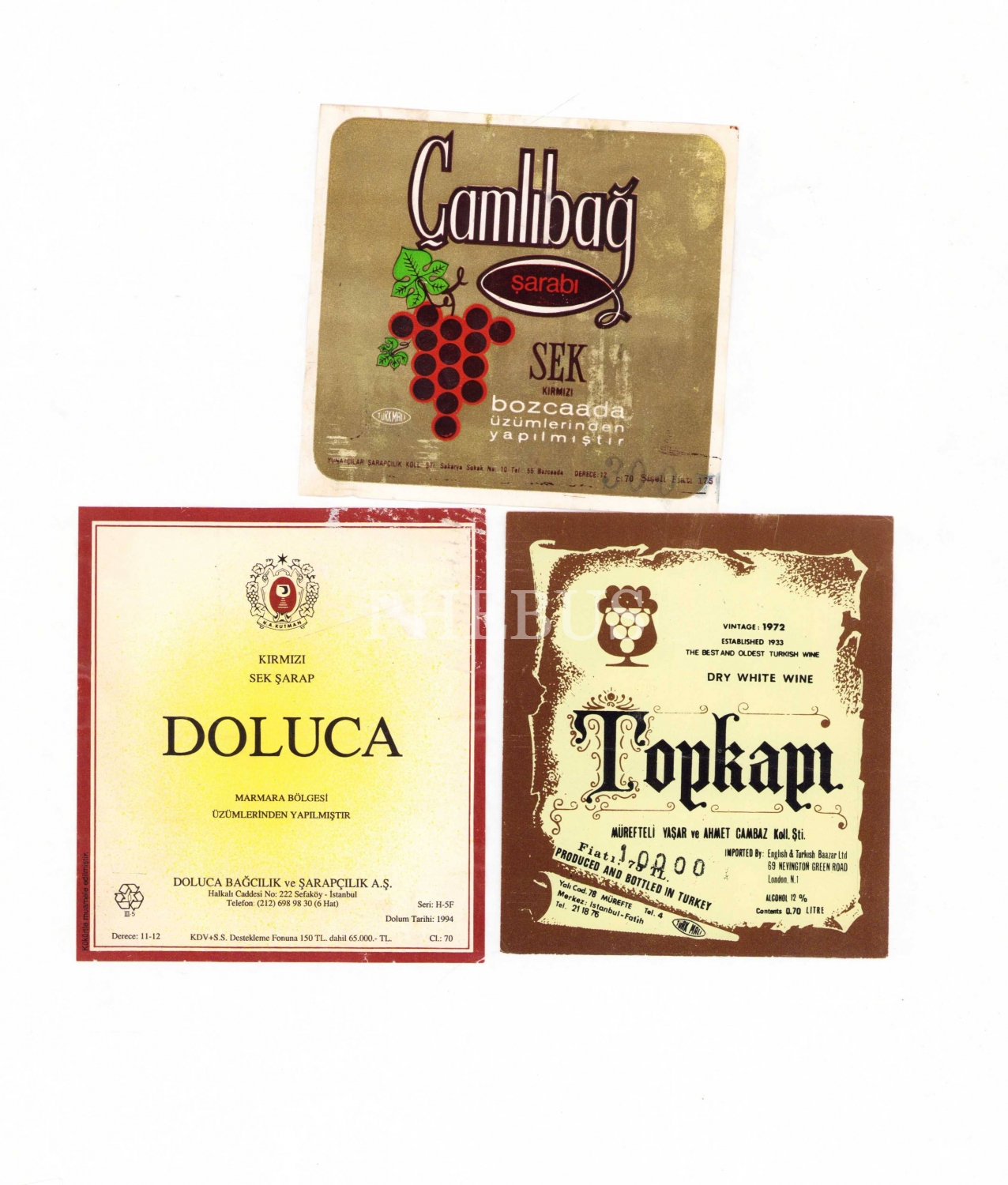 Çamlıbağ, Doluca ve Topkapı marka şarap etiketleri, 3 adet