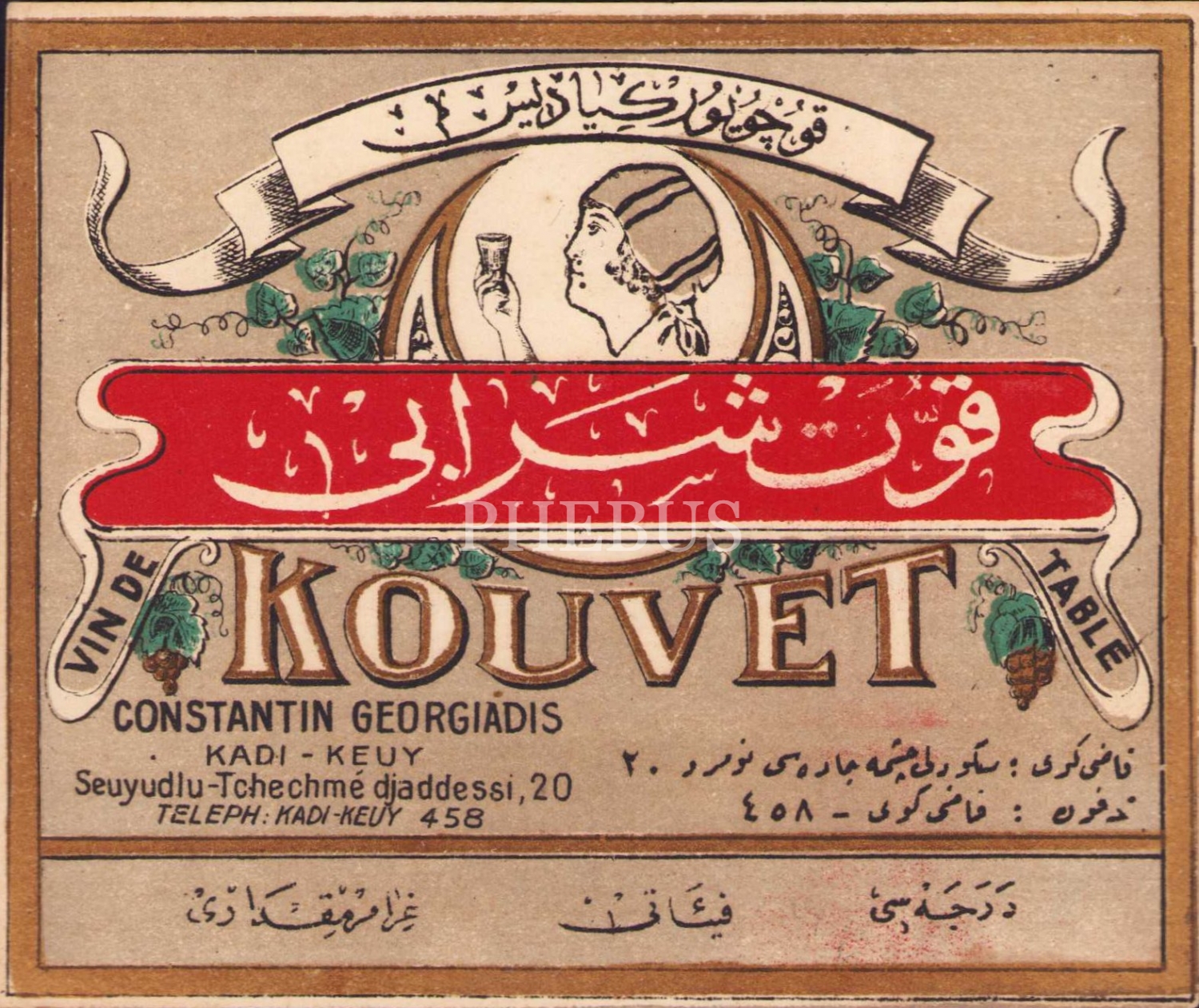 Osmanlıca, Fransızca iki dilde, Kouvet marka şarap etiketi, Kadı-Keuy