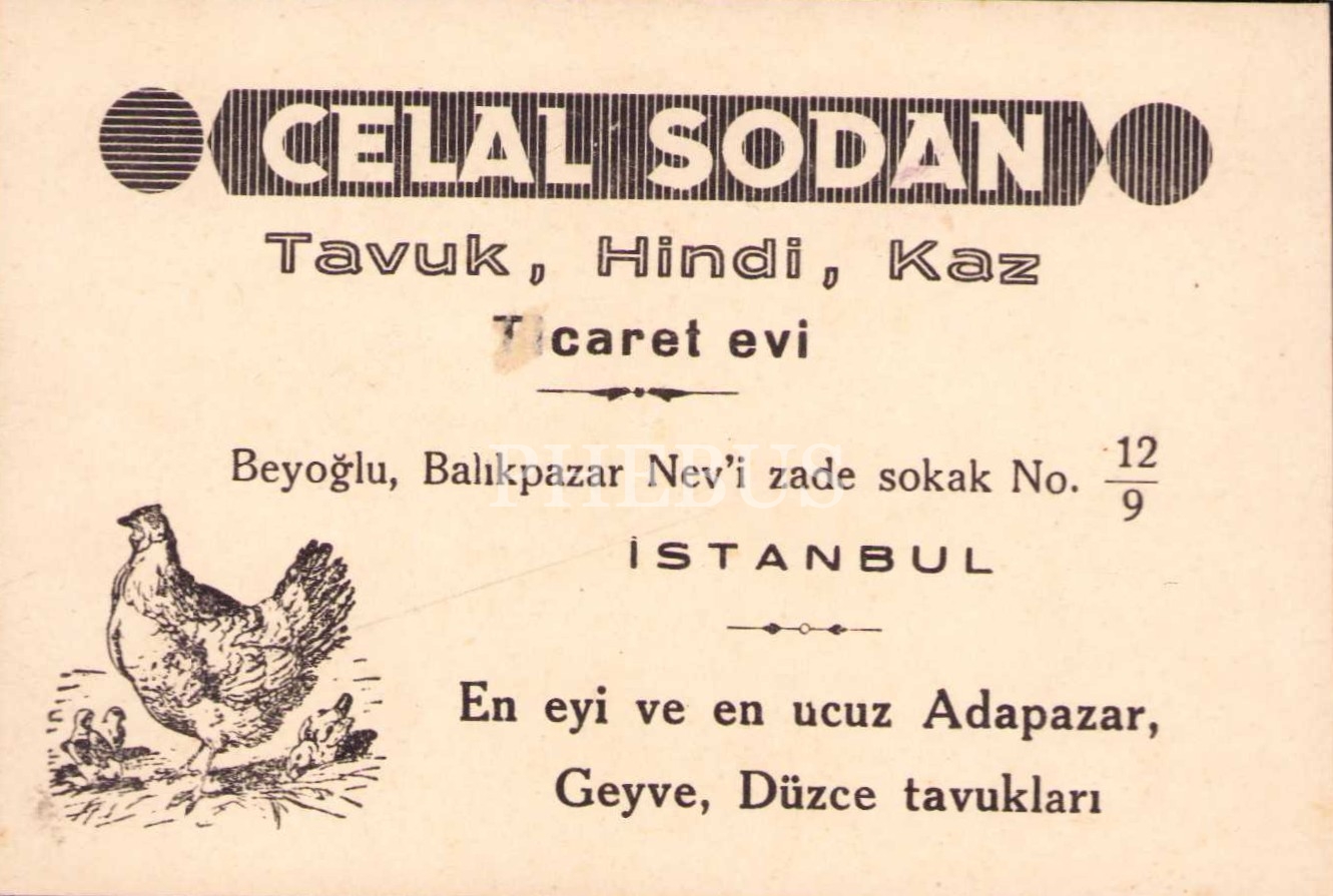Celal Sodan Tavuk Hindi Kaz Ticareti işyeri reklam kartı, 12x8 cm