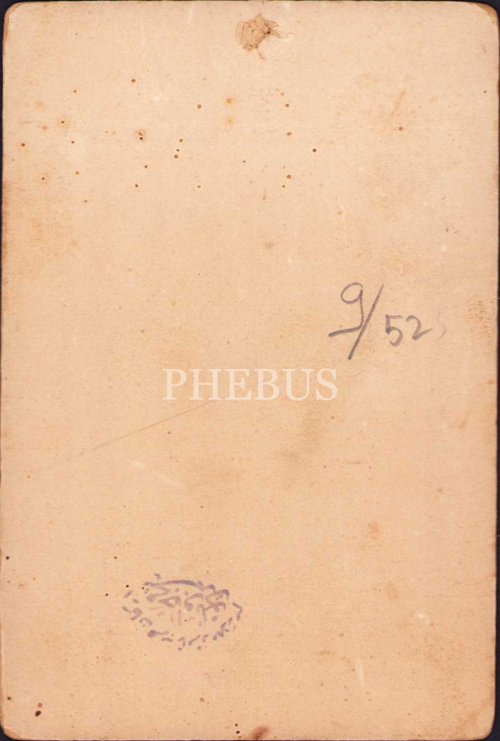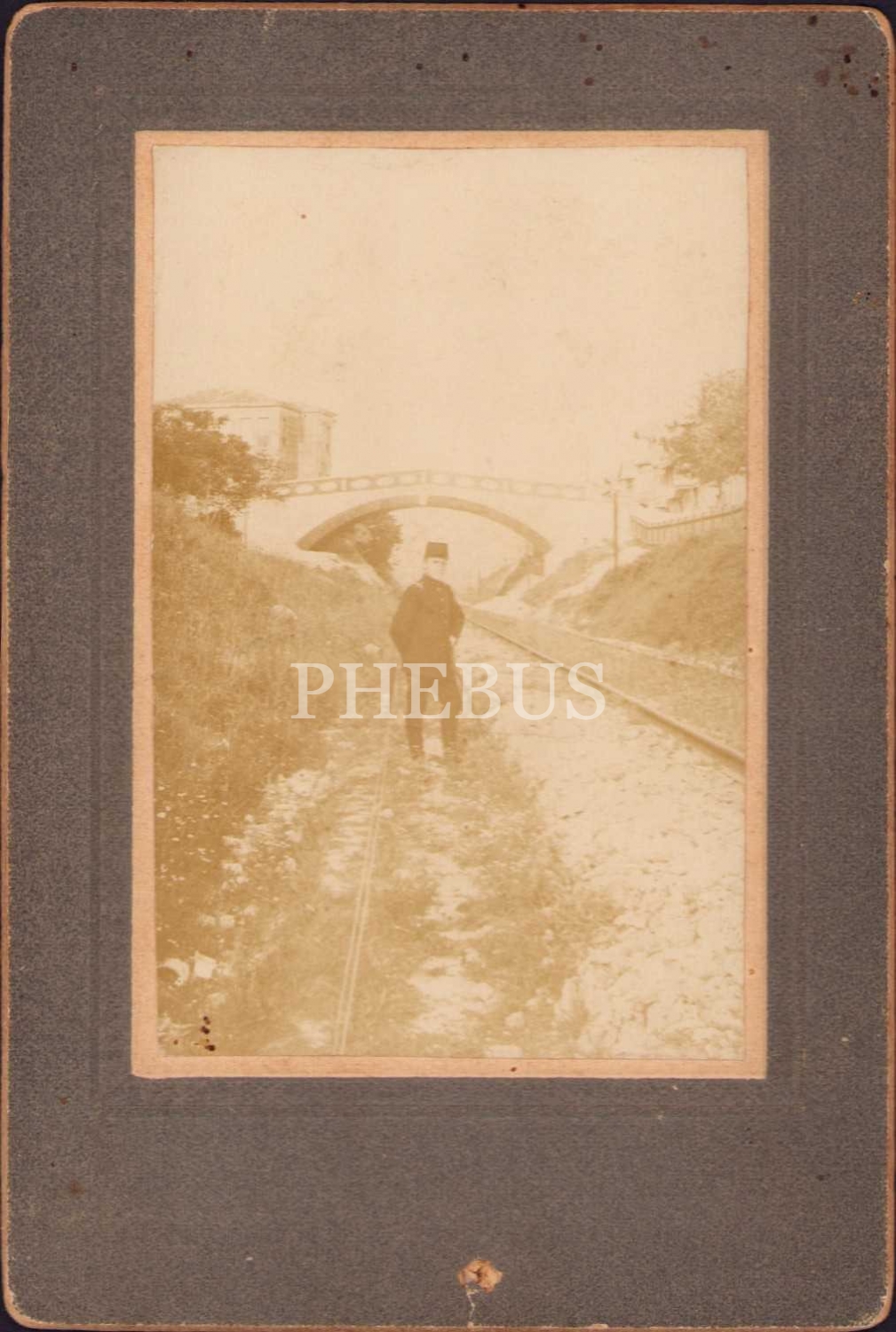 Fesli üniformalı asker trenyolunda, arkası Erkan-ı Harbiye Mülazımı Mehmed Cavid damgalı, 6x9 cm