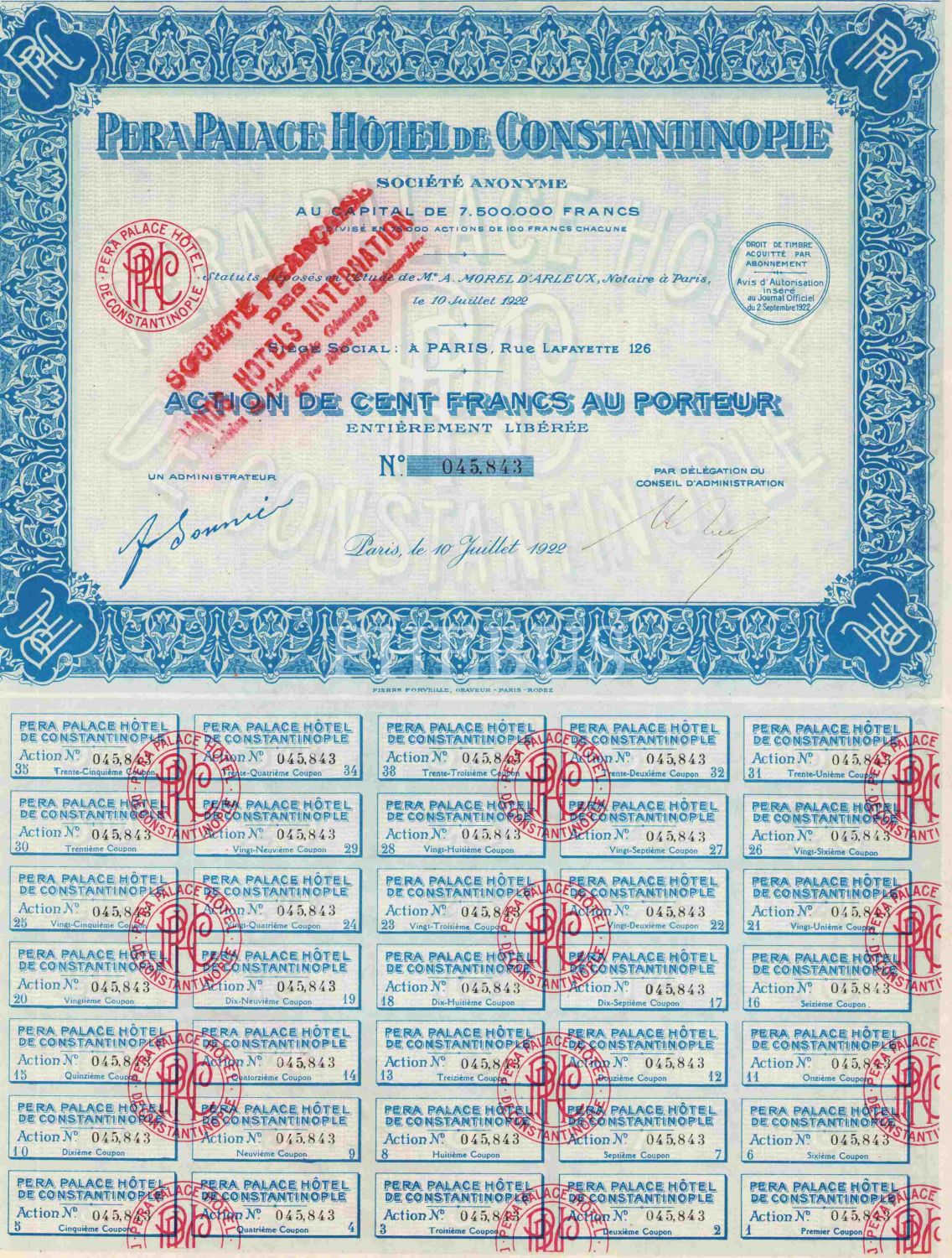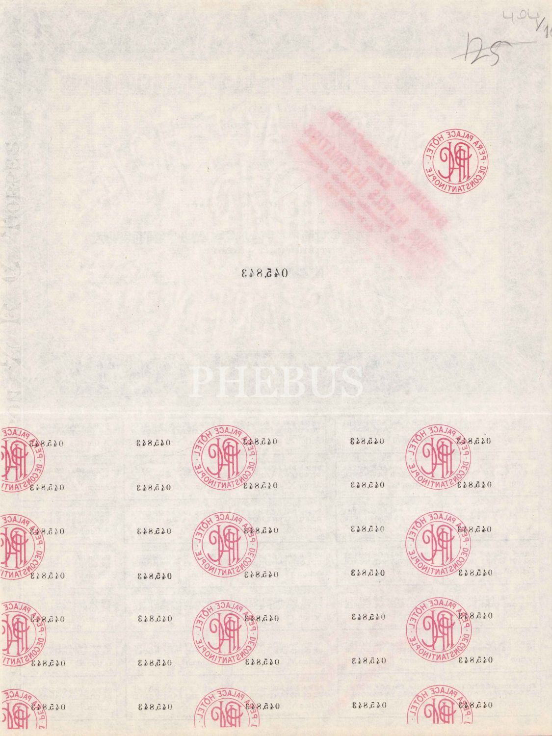 Pera Palace Constantinople hisse senedi, 32x42 cm