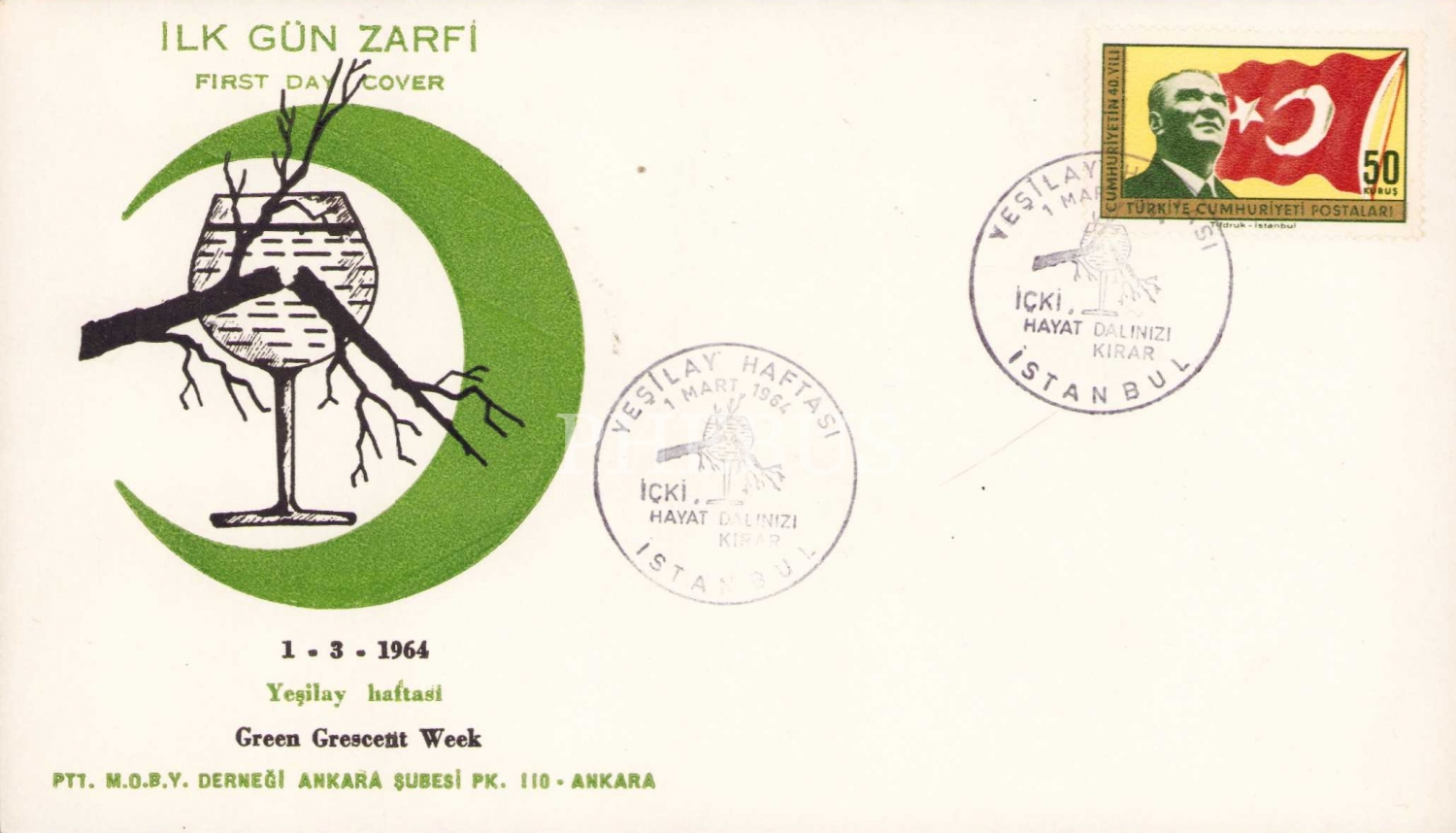 Yeşilay Haftası İlk Gün Zarfı, 1964 tarihli, 18x10 cm