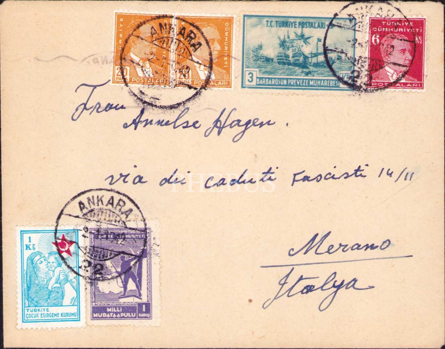 Ankara ve İstanbul damgalı zarf, postadan geçmiş, 15x11 cm