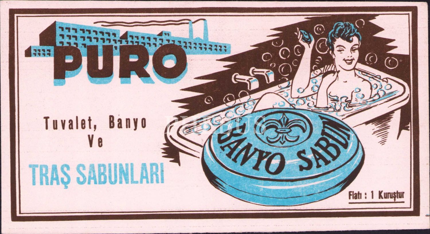 Puro Tuvalet, Banyıo ve Traş Sabunları kurutma kağıdı reklam kağıdı, 21x11 cm