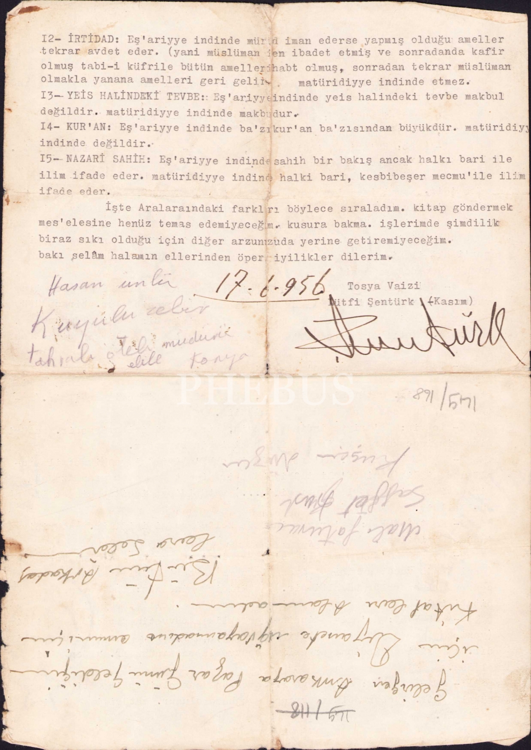 Tosya Vaizi eski diyanet işleri başkan yardımcısı Lütfi Şentürk imzalı belge, 21x30 cm