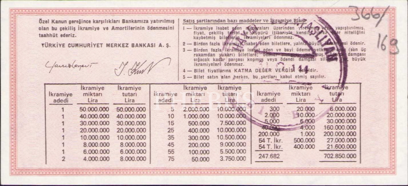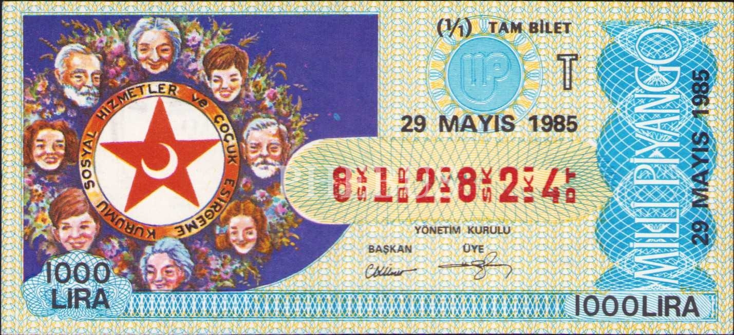29 Mayıs 1985 tarihli Milli Piyango Bileti, 12x6 cm