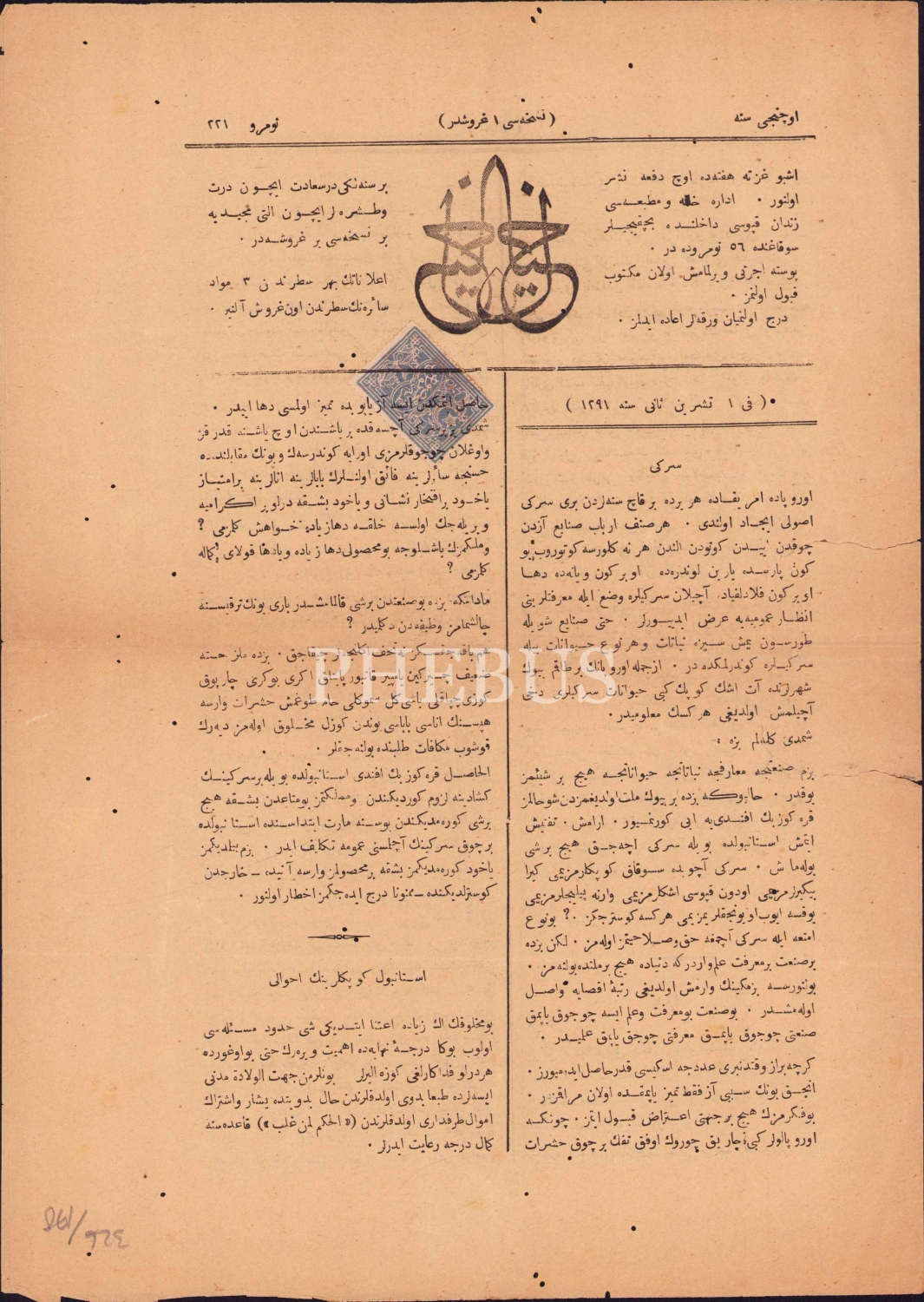Osmanlıca Hayal Mecmuası, Numara 221, pullu, 4 sayfa, 26x36 cm