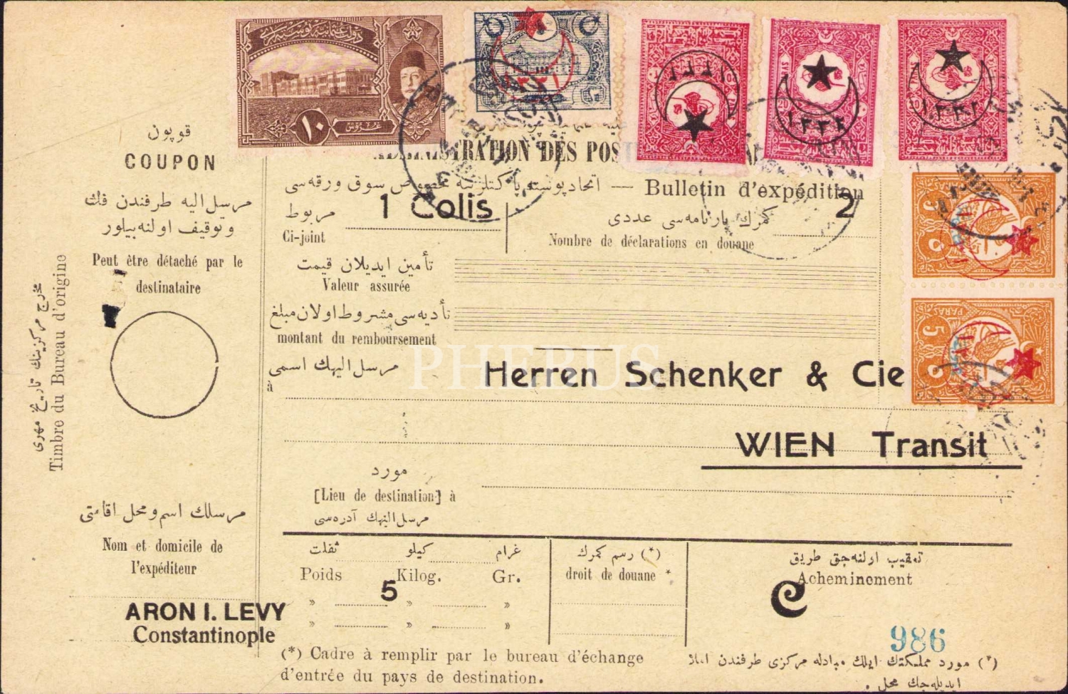 Osmanlıca kupon, Aron I. Levy Constantinople, damgalı ve pullu, 18x12 cm