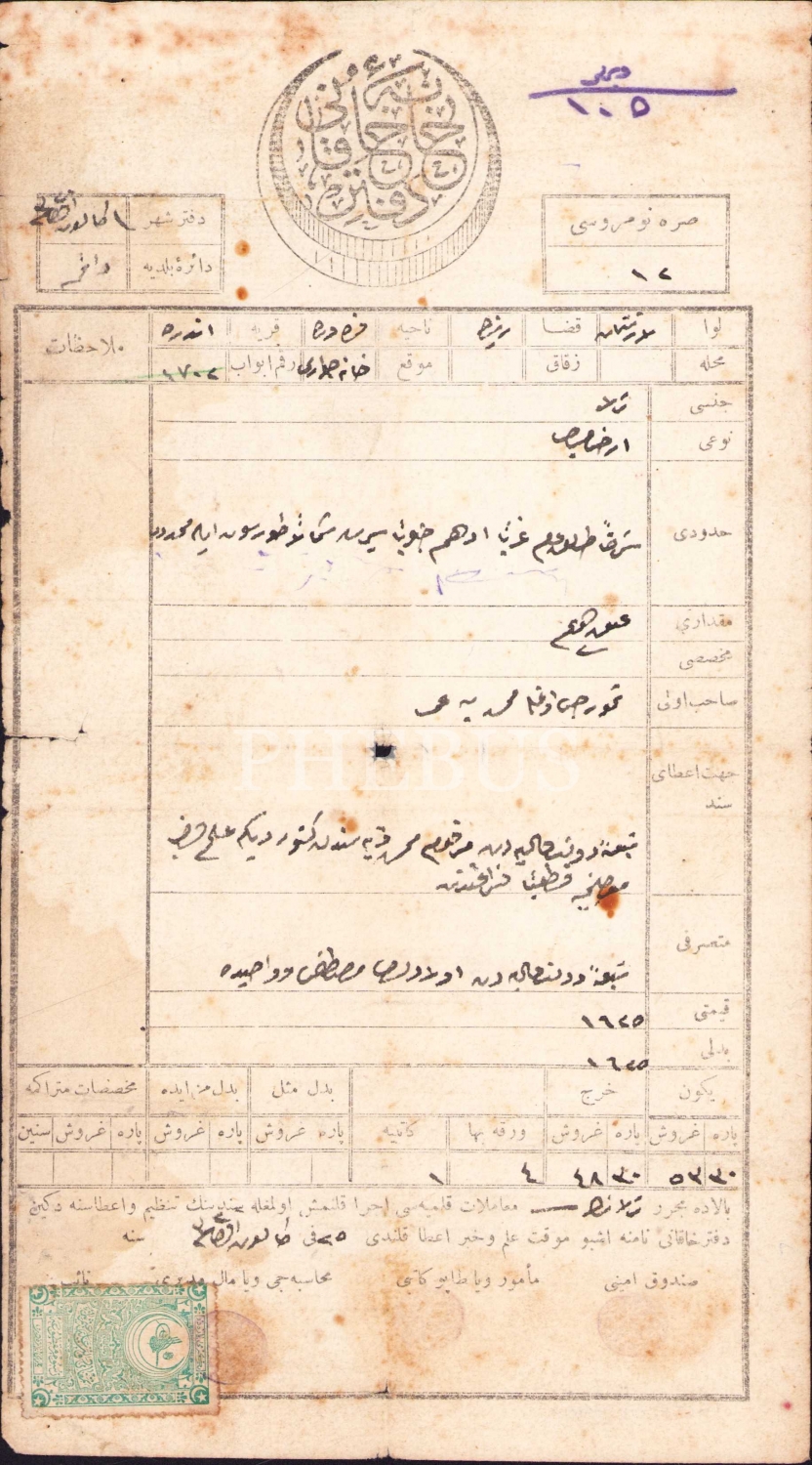 Osmanlıca Tarla tapusu, 1321 tarihli, 16x21 cm