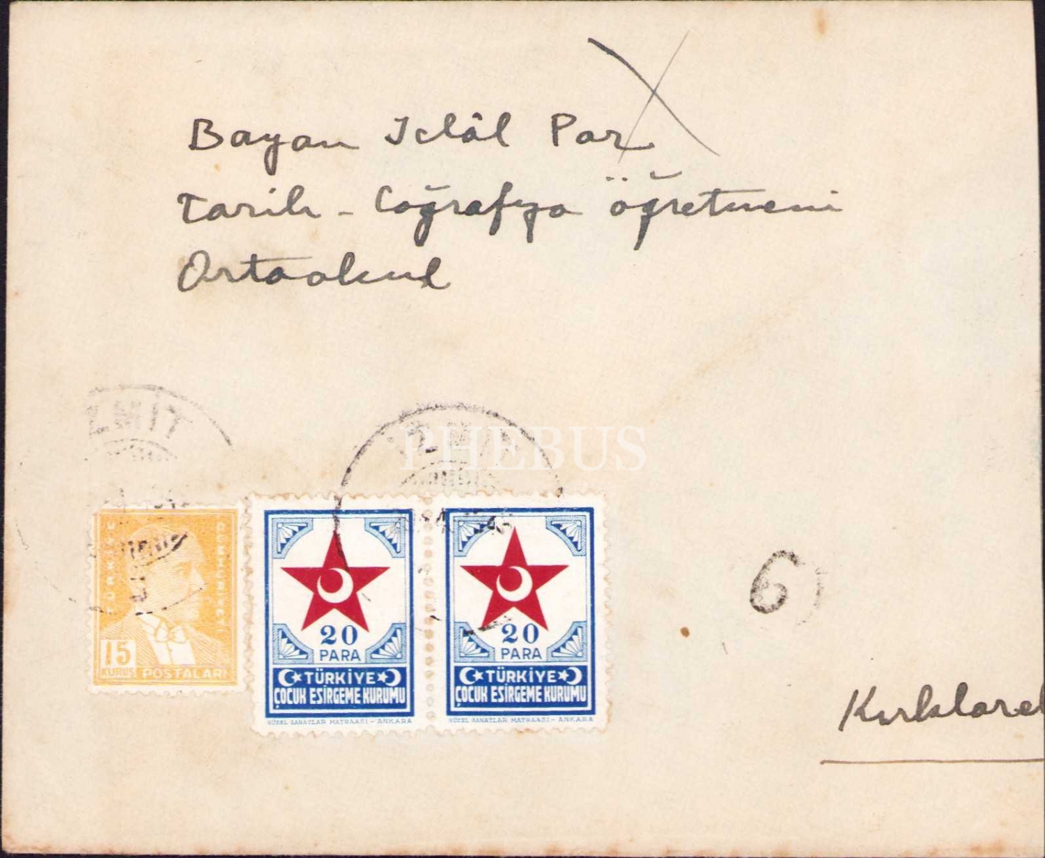 Ortaokul Tarih ve Coğrafya Öğretmeni İclal Par'a gönderilmiş mektup zarfı, postadan geçmiş