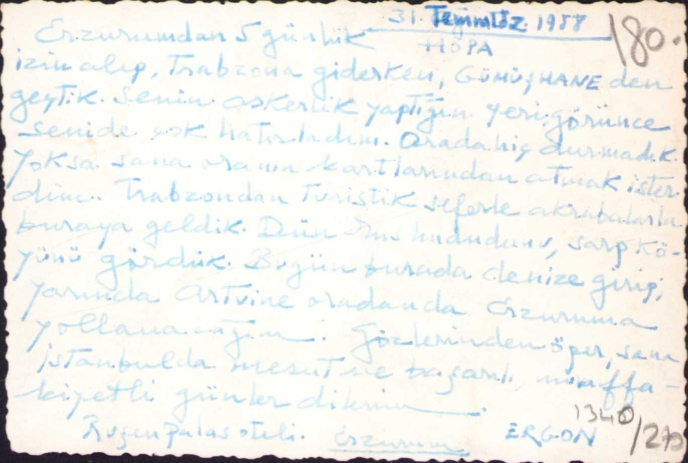 Artvin Hopa, arkası yazılı, 1958 tarihli, 11x7 cm