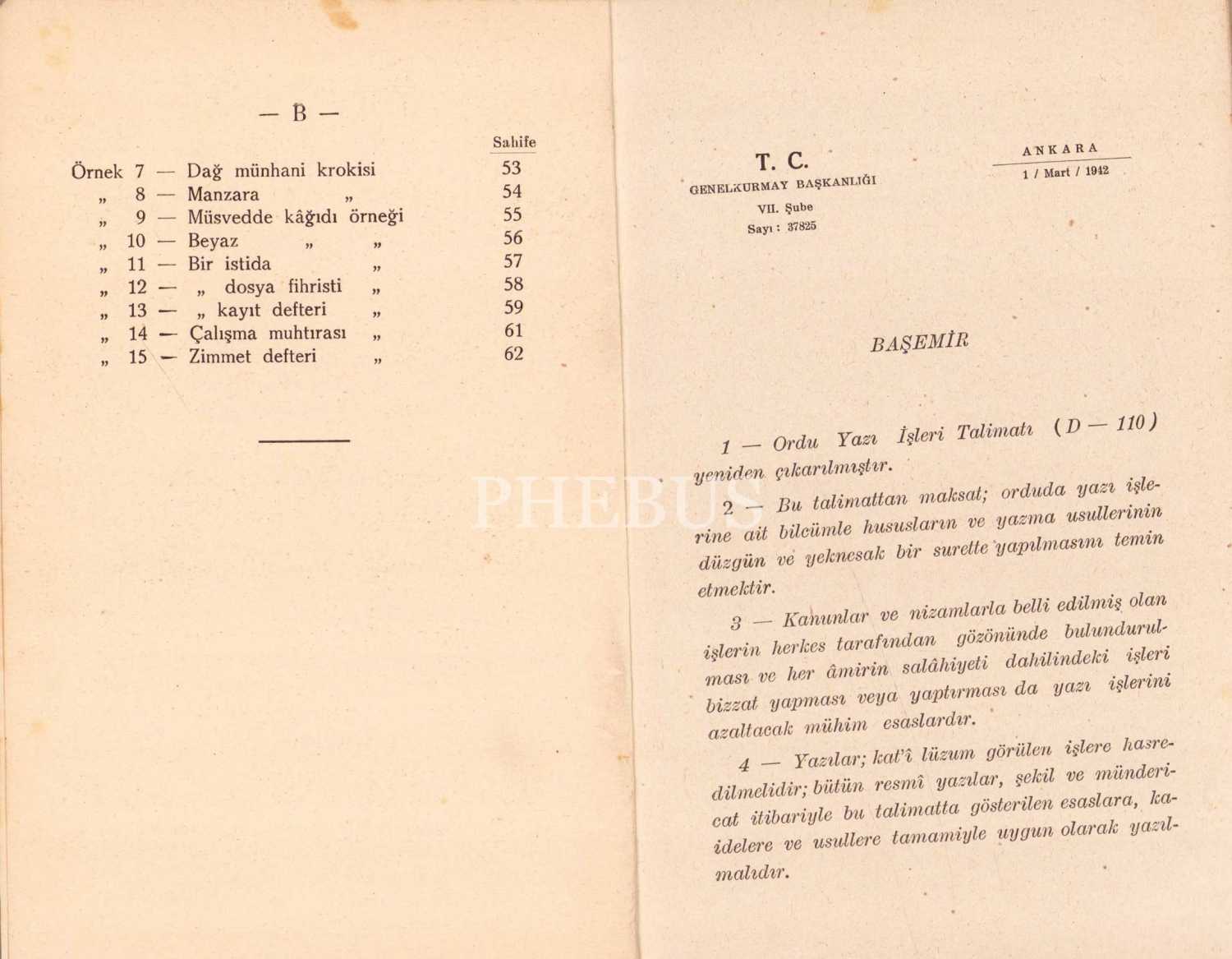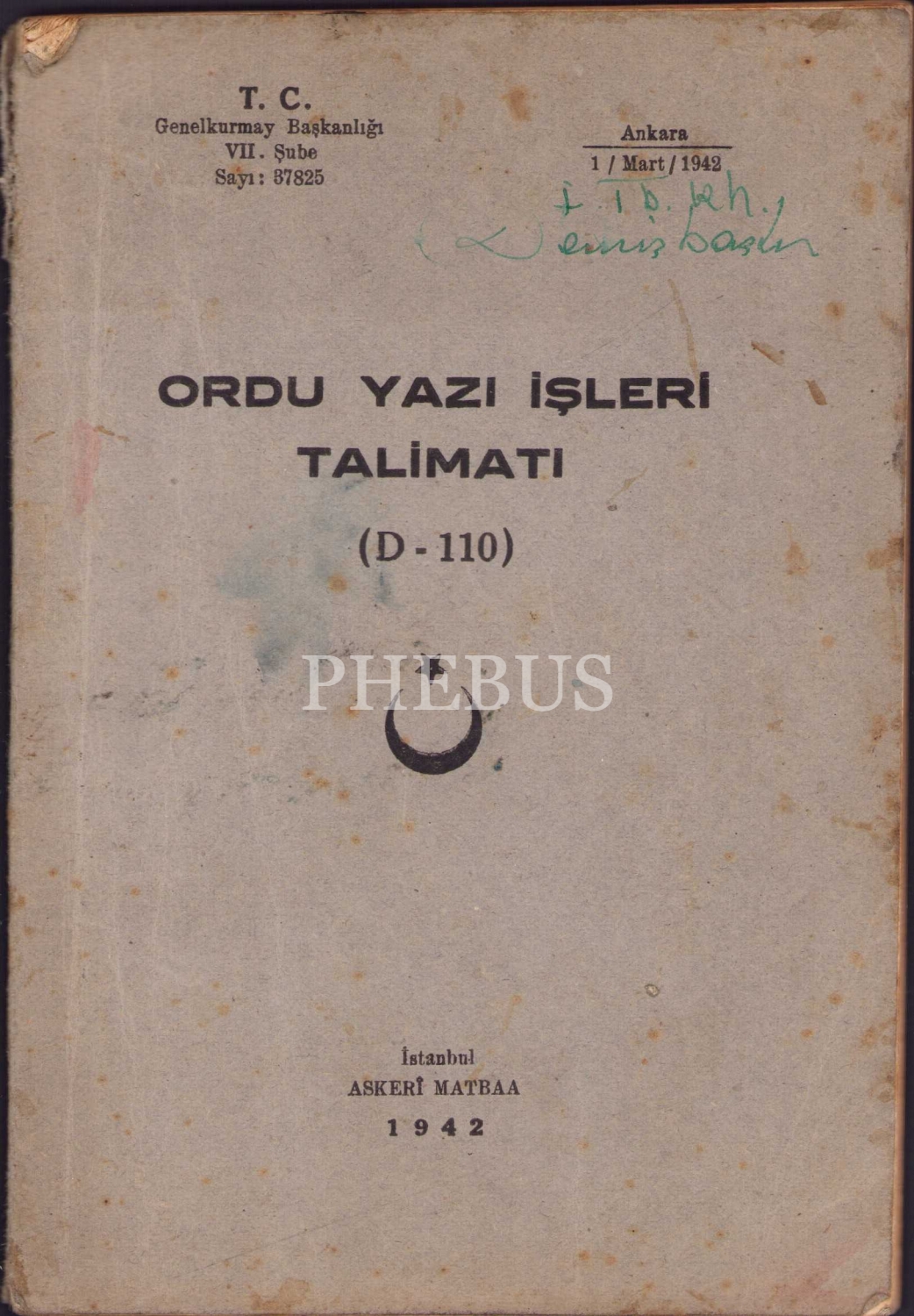 Ordu Yazı İşleri Talimatı, İstanbul Askeri Matbaa, 1942 tarihli, 13x19 cm