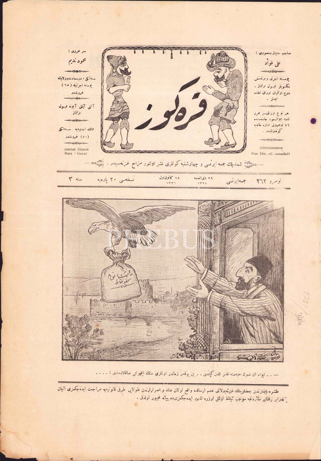 Osmanlıca Karagöz mecmuası, Sultan Abdülhamid kapaklı, 17 Kanunuevvel 1326 tarihli, 29x44 cm