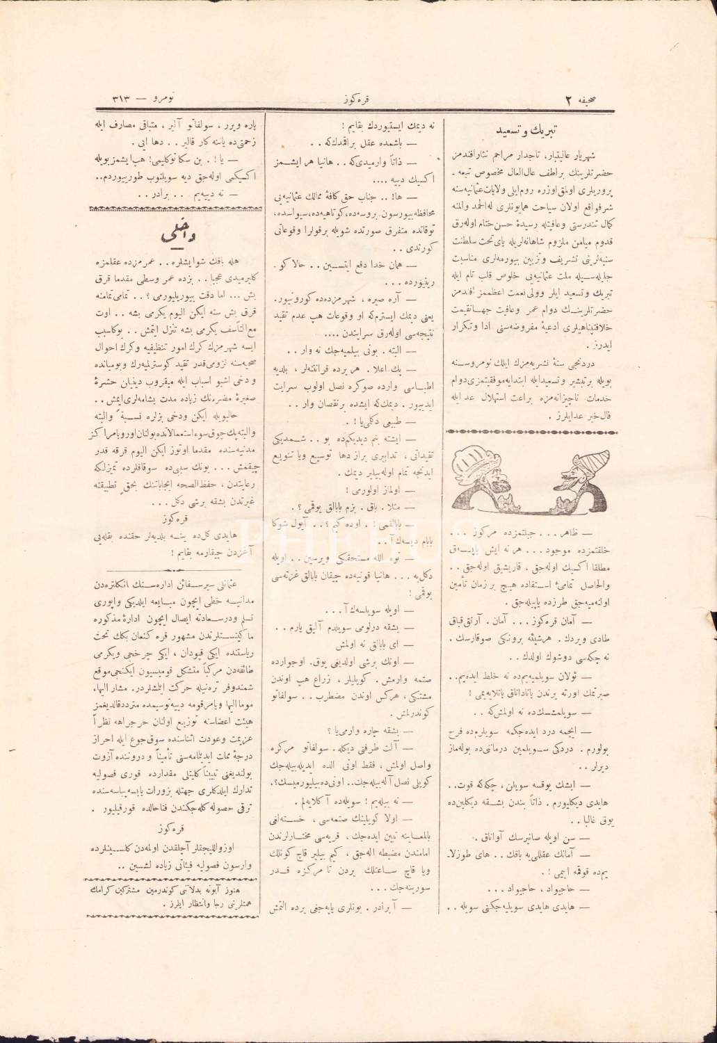 Osmanlıca Karagöz Mecmuası, 15 Haziran 1327 tarihli, Numara: 313, 24x41 cm